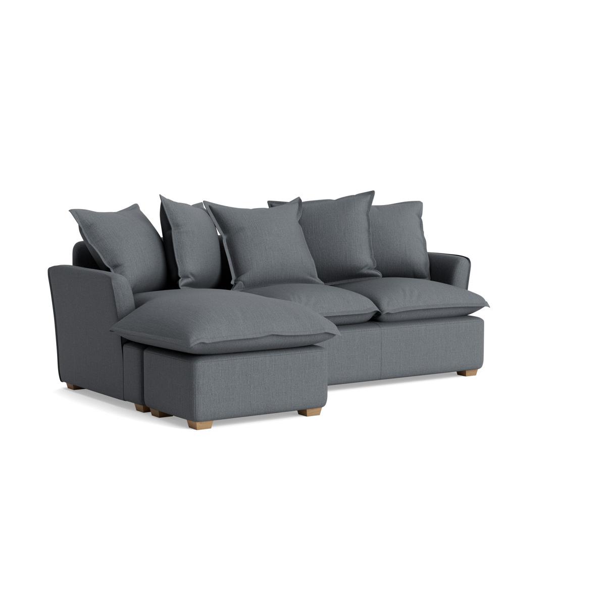 Designed for movie marathons and Sunday afternoon snoozes, our Umea range of made to order upholstered furniture offers inviting and squishy seating you can truly sink into. Sculpt those loosely stacked back cushions to establish the perfect sitting or reclined pose and breathe deep into their supportive comfort. Smart Oxford style pillow case edges to the back and seat cushions smarten up the relaxed look and deeper seats offer extra legroom. This collection offers levels of comfort that makes the occasional plumping session to keep those feather cushions fluffy and fresh feeling a pleasure. The chaise sofa features modern English low arms, feather filled removable and reversible seat and back cushions and polished square tapered wooden legs. The chaise end can be placed to either the right and the left hand side and also separated from the body of the sofa. The Umea range includes a chaise sofa, two seater and three seater sofas, a loveseat, an armchair and an ottoman. Our Umea collection can be upholstered in a choice of 34 distinctive shades and six fabrics to suit your style. Read our Upholstery FAQs View our full Upholstery Terms and Conditions