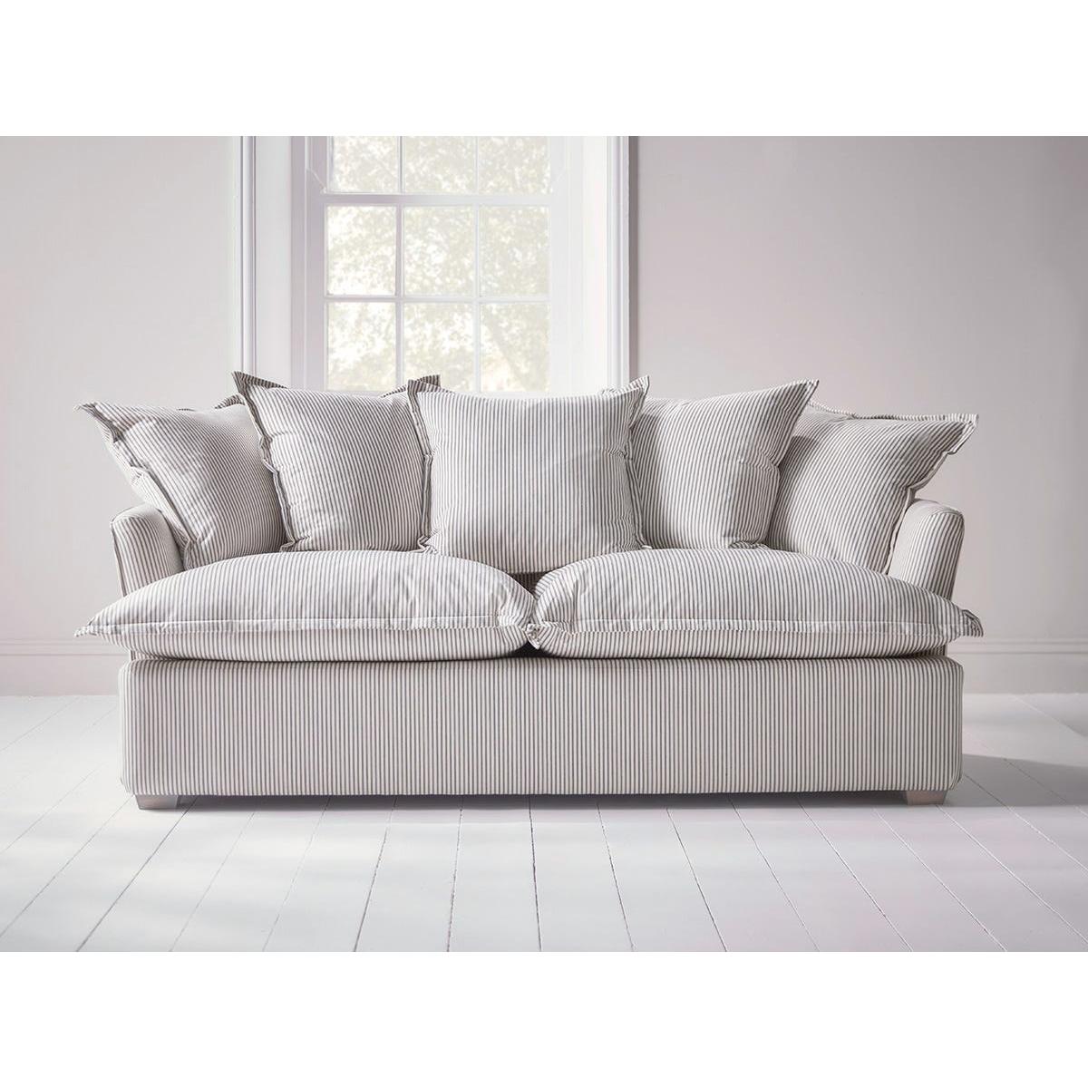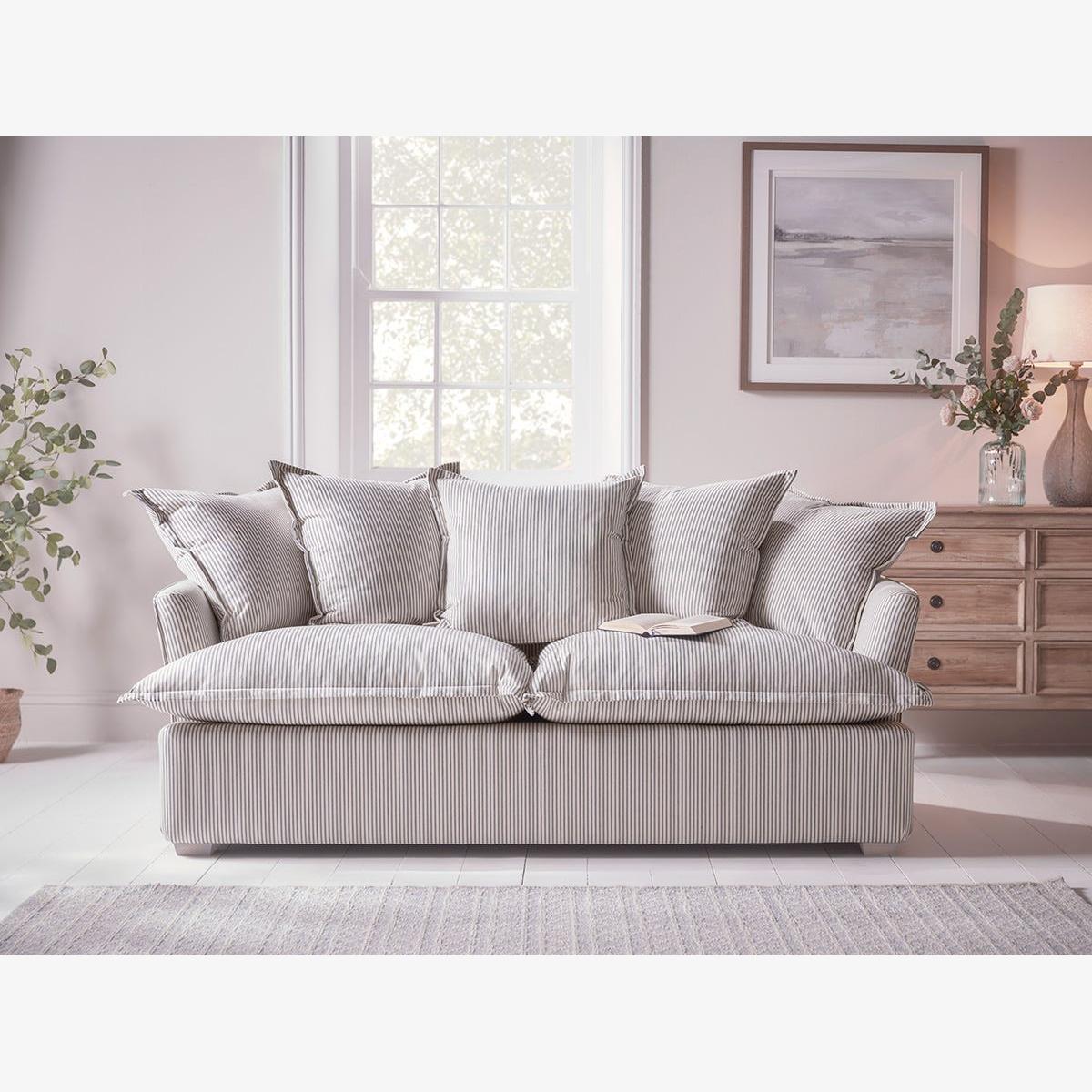Designed for movie marathons and Sunday afternoon snoozes, our Umea range of made to order upholstered furniture offers inviting and squishy seating you can truly sink into. Sculpt those loosely stacked back cushions to establish the perfect sitting or reclined pose and breathe deep into their supportive comfort. Smart Oxford style pillow case edges to the back and seat cushions smarten up the relaxed look and deeper seats offer extra legroom. This collection offers levels of comfort that makes the occasional plumping session to keep those feather cushions fluffy and fresh feeling a pleasure. The sofa is available as a two seater or three seater and features modern English low arms, feather filled removable and reversible seat and back cushions and polished square tapered wooden legs. The Umea range includes a chaise sofa, two seater and three seater sofas, a loveseat, an armchair and an ottoman. Pictured here in our French Blue stripe material, our Umea collection can be upholstered in a choice of 34 distinctive shades and six fabrics to suit your style. Read our Upholstery FAQs View our full Upholstery Terms and Conditions