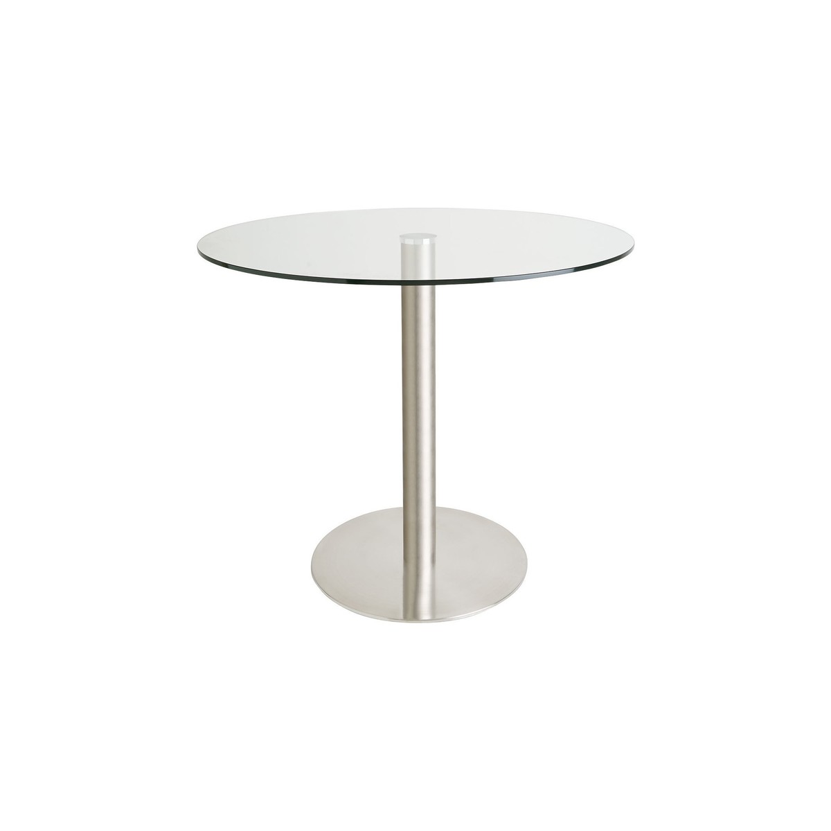 The compact Umi 4 seater metal and glass round dining table is perfect for smaller spaces and allows light to bounce around the room.;Exclusive to Habitat, the table has a chromed stem and base for a luxurious, contemporary look and its top is made from clear tempered glass.;The Umi table complements a variety of chairs in our collection and the design is also available as a Woodumi table, with an oak or walnut veneer stem and base.