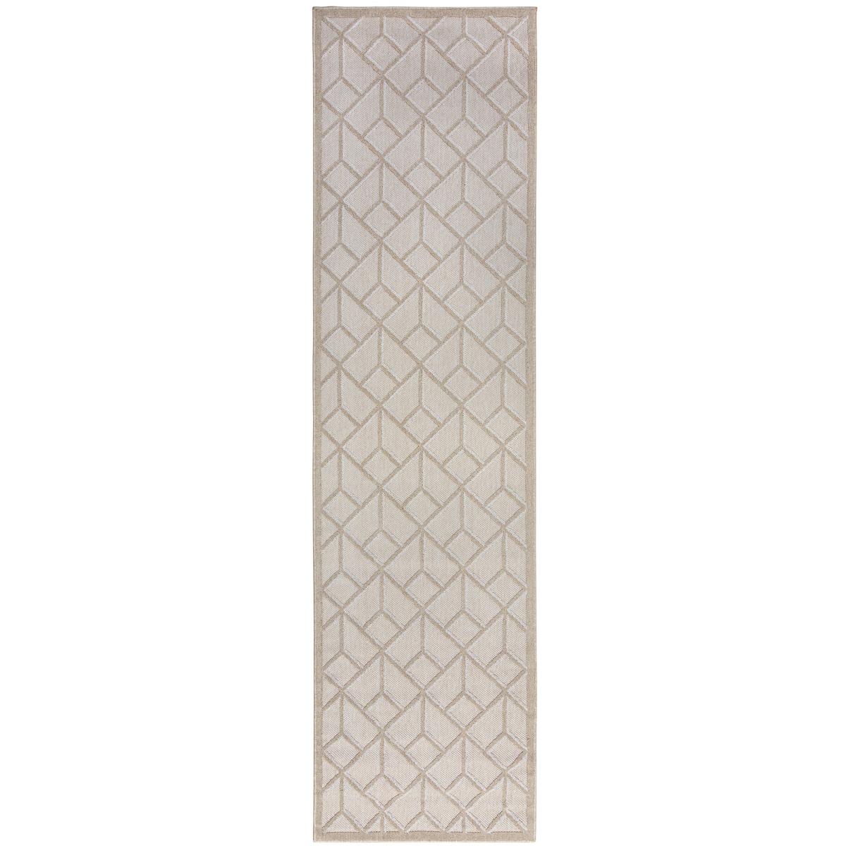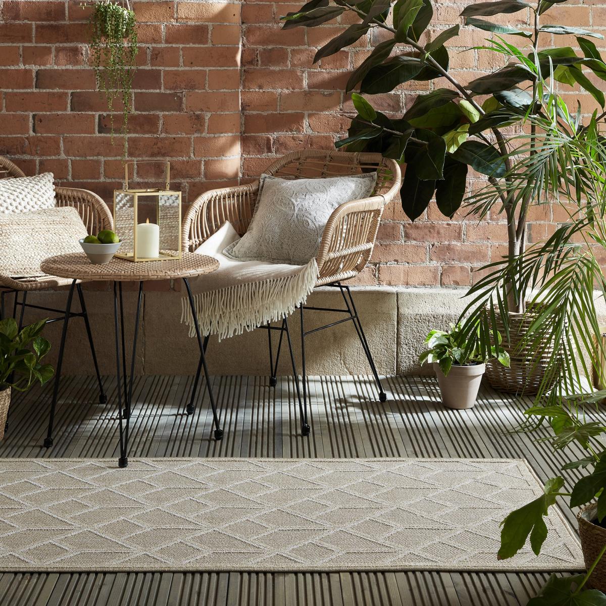 The Una Diamond Indoor Outdoor Runner adds a global style to both indoor and outdoor spaces. In a tufted high/low effect pile to add depth to the statement geometric look. In a polyester/polypropylene blend the Una Diamond Indoor Outdoor Runner is ideal for both indoor spaces and outdoor zones. The pile is weather-resistant and hard-wearing, perfect for busy spaces. We love using our indoor outdoor rugs to add a layer of comfort and style to outdoor spaces and indoors to add a durable, easy-to-clean element. The perfect addition to gardens, patios, kitchen or hallways. Re-roll your rug pile out for 24 hours to reduce curling. Regularly turn to ensure even wear. An anti-slip mat will help prevent slipping. Blot spills immediately with a clean, dry white cloth. Do not rub. Do not place this rug near an open fire. Please do not leave children or infants unattended.