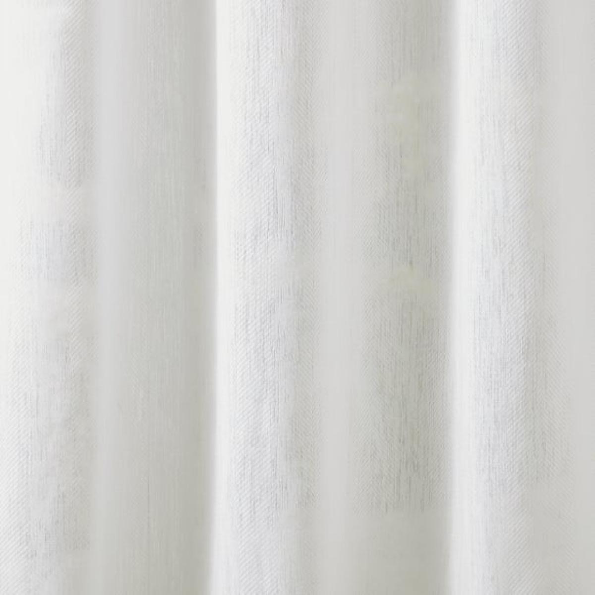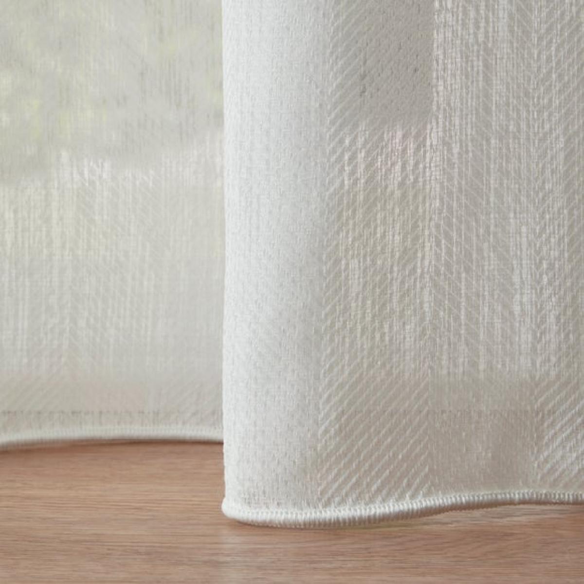 * Subtle textured design on plain white fabric * Lightweight, 100% recycled polyester * Available in a selection of header options Showcasing a subtle textured design, the Una voile curtain brings understated sophistication and depth to your space. Made from lightweight, 100% recycled polyester, this voile offers privacy while enhancing the flow of natural light into your room. Its clean, versatile design makes it easy to complement any setting or colour scheme. Customise to suit your needs by choosing from our range of header options.