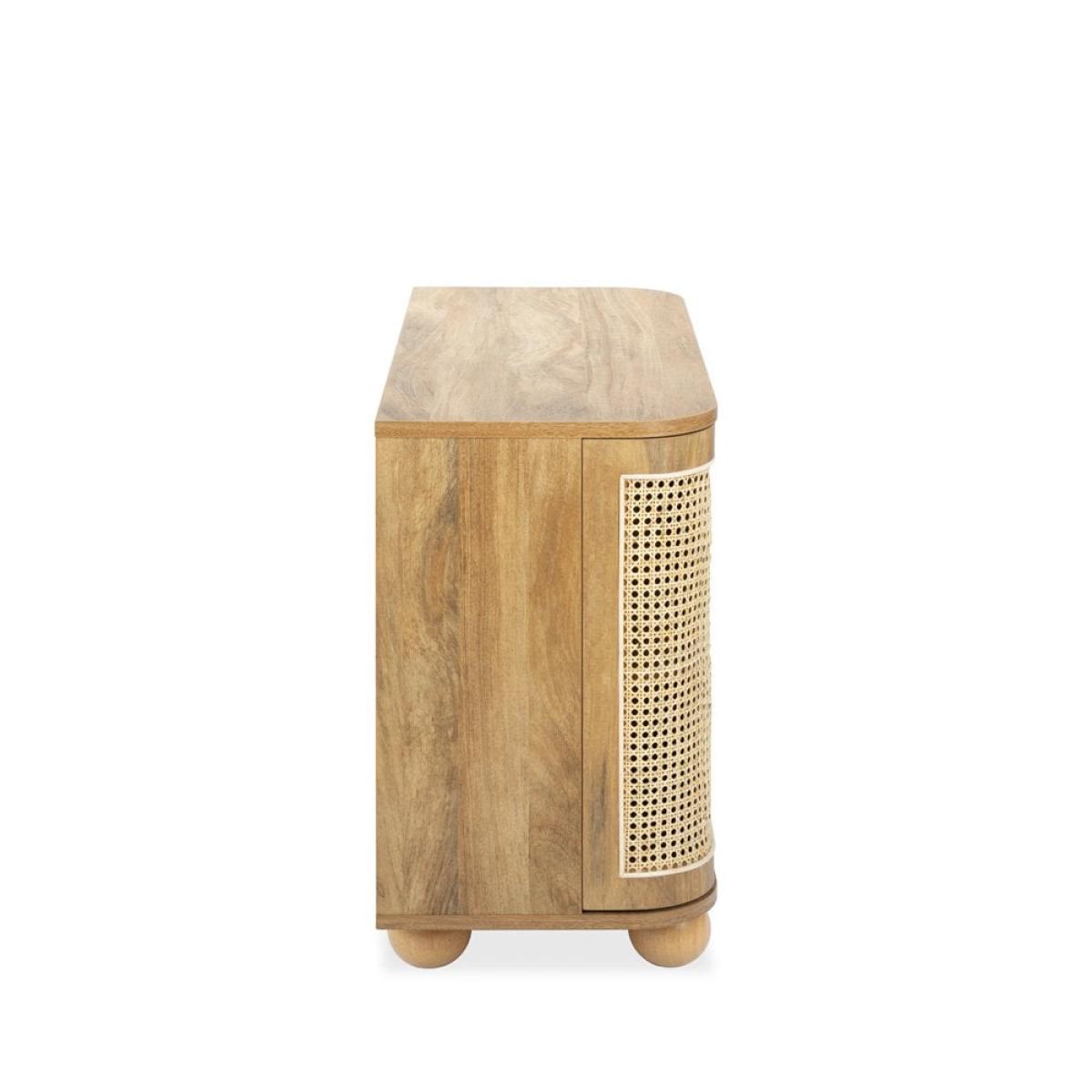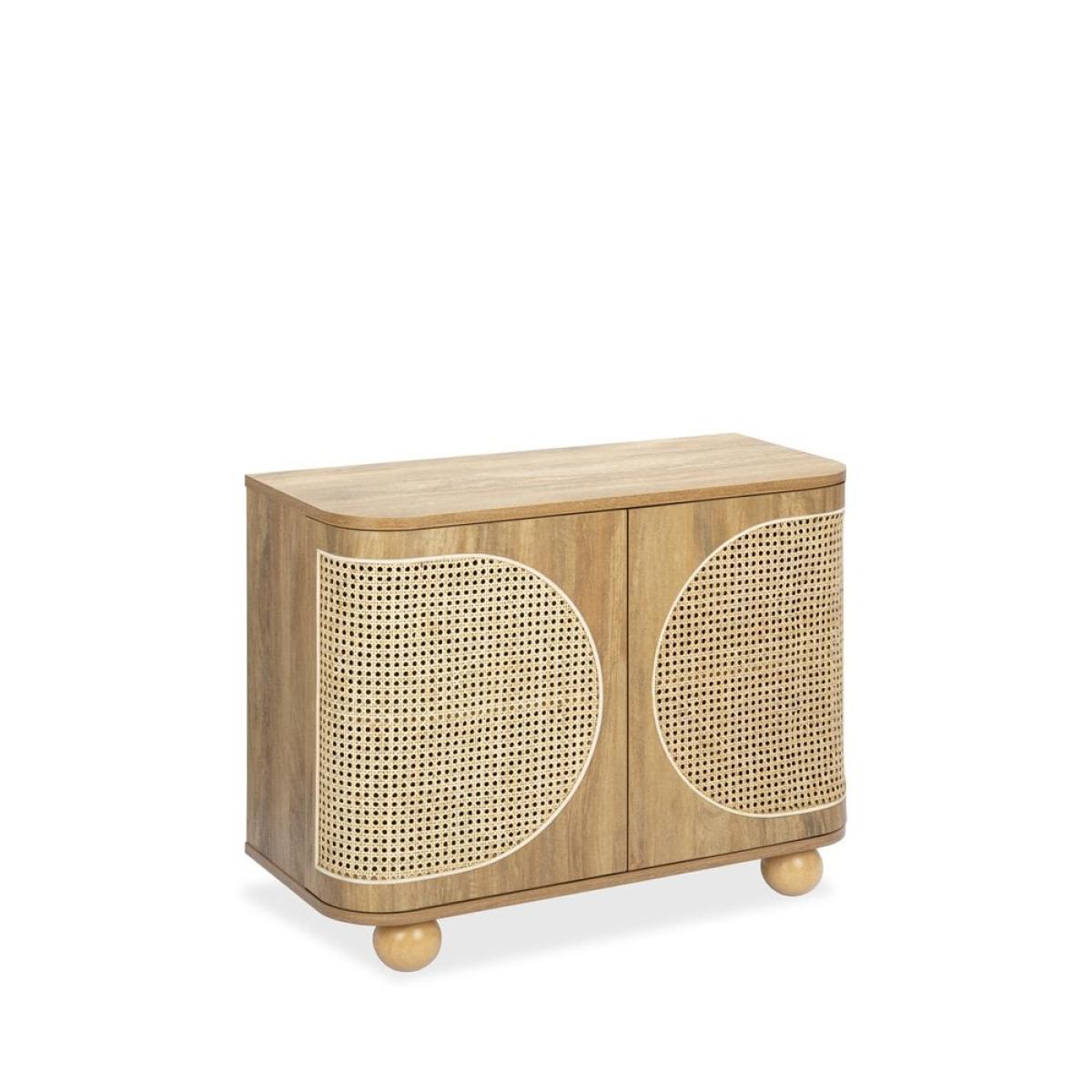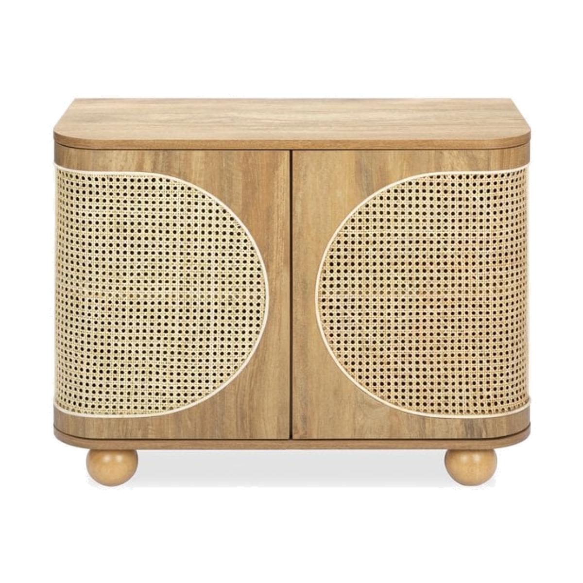 The Una 2 Door Sideboard gives serious retro charm with its statement ball feet, curved edges, and natural rattan side panelling. In a oak effect finish that replicates the unique grain pattern of the wood, this is no ordinary wooden sideboard. What's more, there is plenty of storage space with two doors revealing a spacious compartments within. View The Una Range
