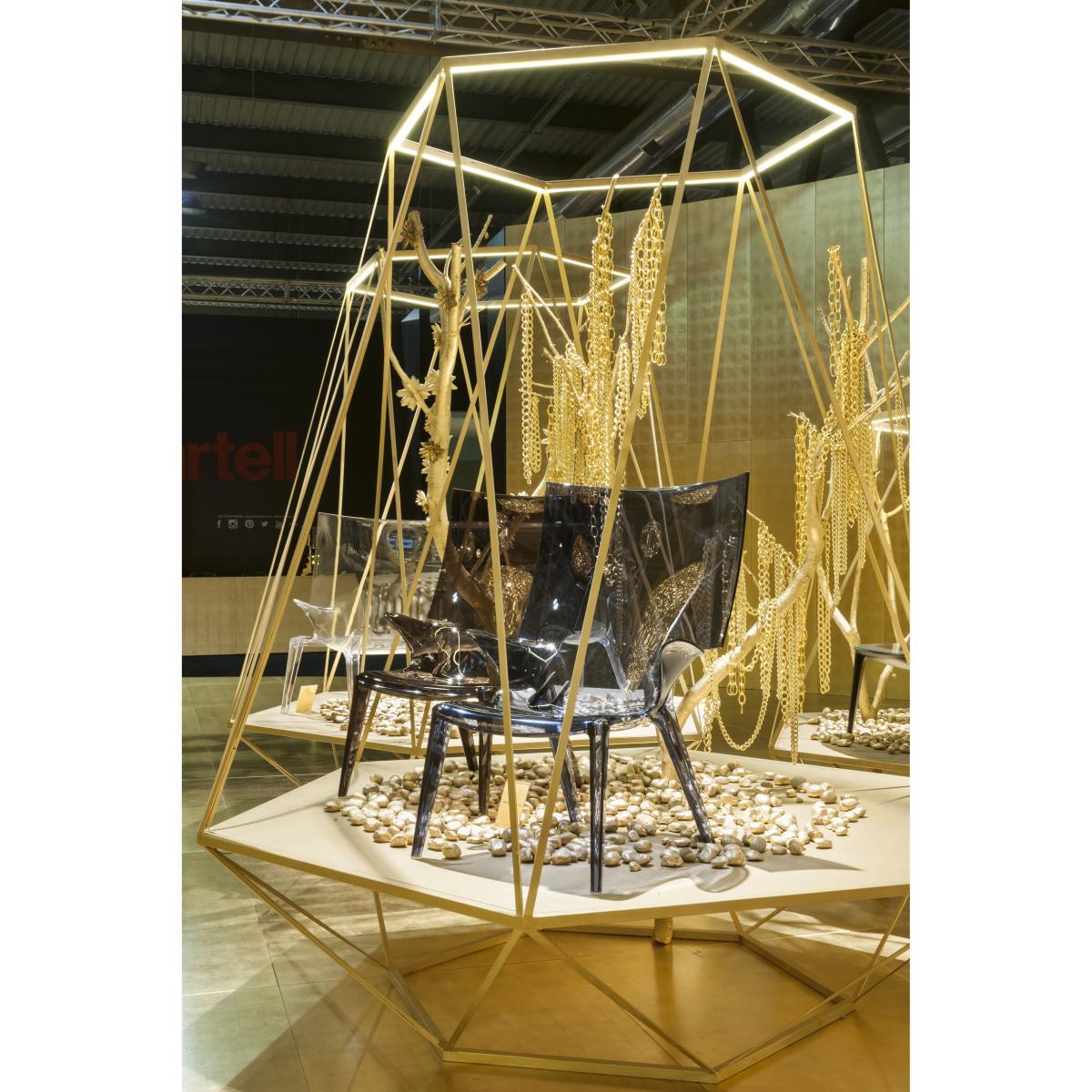 Philippe Starck's kartell collaboration continues with a true family of indoor and outdoor furniture pieces ‘aunts and uncles' comprised of five designs: the ‘uncle jack' sofa, ‘uncle jim' armchair, ‘uncle jo' chair, ‘aunt jamy' dining table' and ‘aunt maggy' console is being shown. The stimulus which informed their shapes is derived from starck's memory of his aunts and uncles sitting in their armchairs and sofas either smoking their pipes, knitting or gathered around telling stories to the family-his resulting work seen as a minimalist technological interpretation of these. The entire collection of seating and tables are produced in transparent polycarbonate using injection molding technology-one of the key points to mention is the ability of having producing the ‘uncle jack' sofa using this method because of its size of almost 2 metres long, something which has not previously been possible.