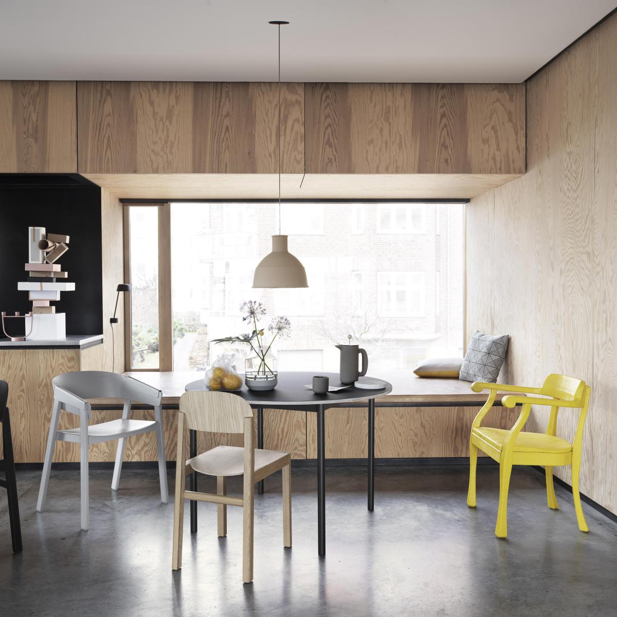 The Unfold pendant by Muuto is a reinterpretation of the classic industrial lamp. The lampshade is made of rubber and needs to be “unfolded” (get it?) before it is hung. The lamp is available in a whole array of beautiful colors.