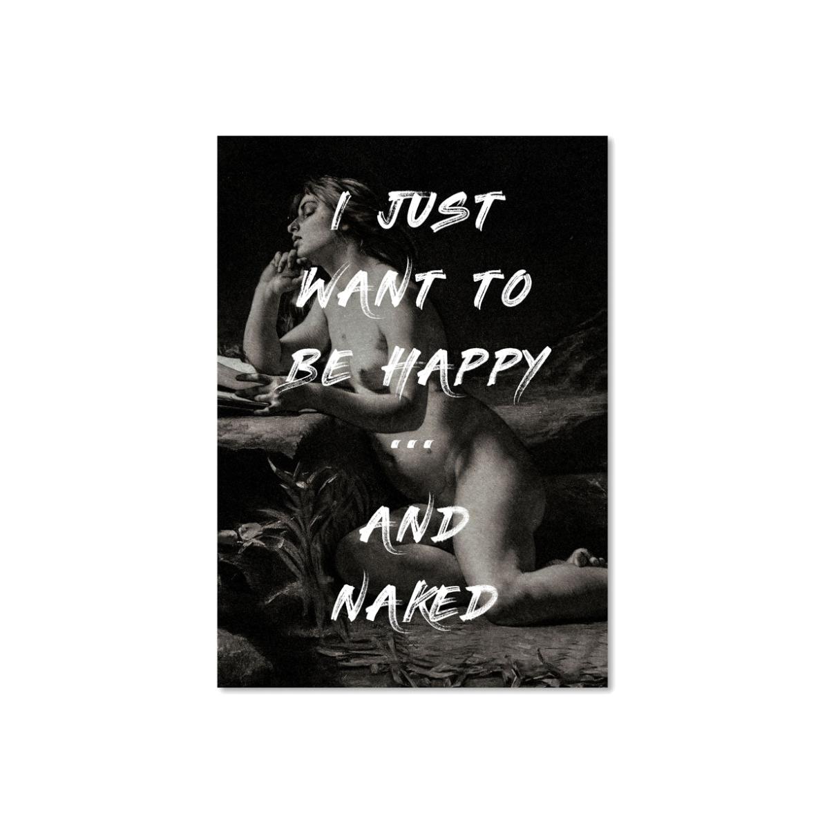 About The Happy & Naked Art PrintThe Happy and Naked Art Print is a quirky fabulous show stopper, injecting a one of a kind charm into any corner of your home with its romantic style and striking motif. A traditional Wall Art Print with a twist, this piece features a glorious black and white renaissance painting layered with a playful phrase, available framed or unframed. Why We Think You’ll Love The Contemporary Art PrintThis Classic meets Modern Art Print is daring and delightful, a monochrome piece that can be paired with any interior and is guaranteed to bring joy to your decor. Showcasing effortless style and a marvellous allure, this Unique Wall Art promises to add instant character to your home, a must have for those who love to create the wow factor with their scheme by adding a hint of cheekiness!Where To Style The Typography ArtThe perfect Bathroom Art Print that will stand out from the rest, this boldly beautiful naked print will transform the room, becoming the stunning focal feature of the space. This Black and White Wall Art is a brilliant centrepiece for creating a wall of treasures, surround it with additional art prints and wall ornaments in your living area for a display that you will not regret.