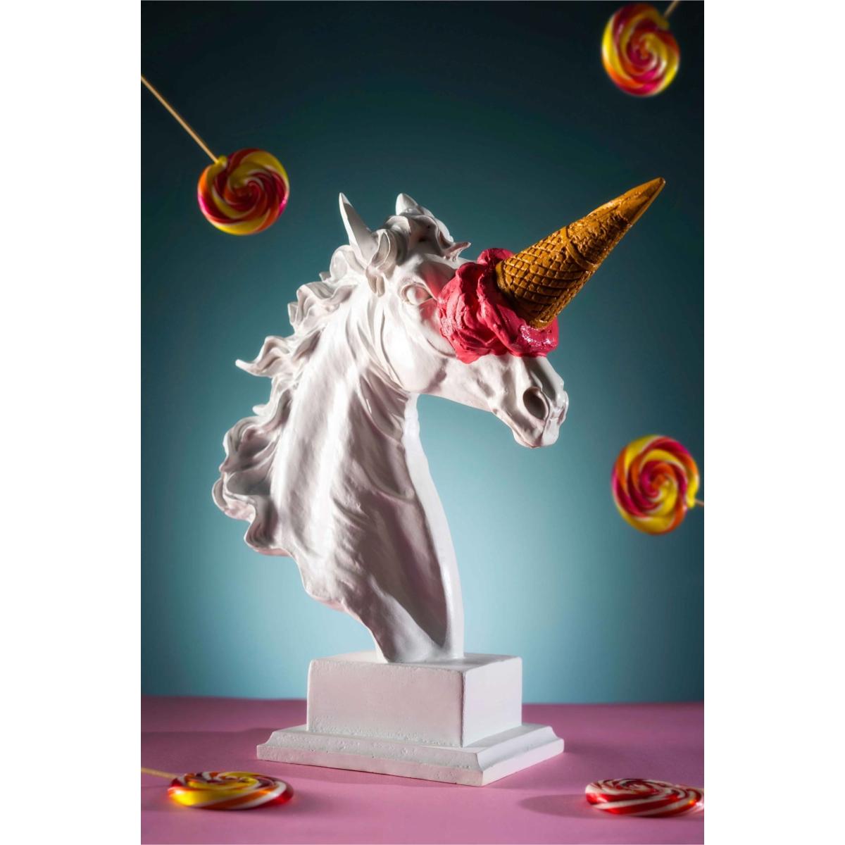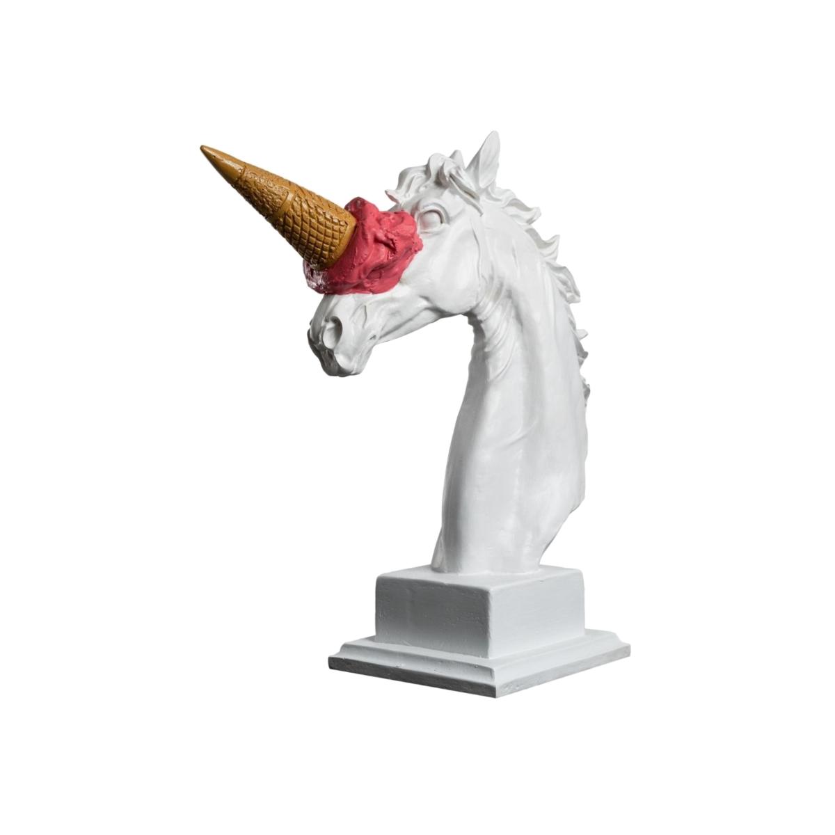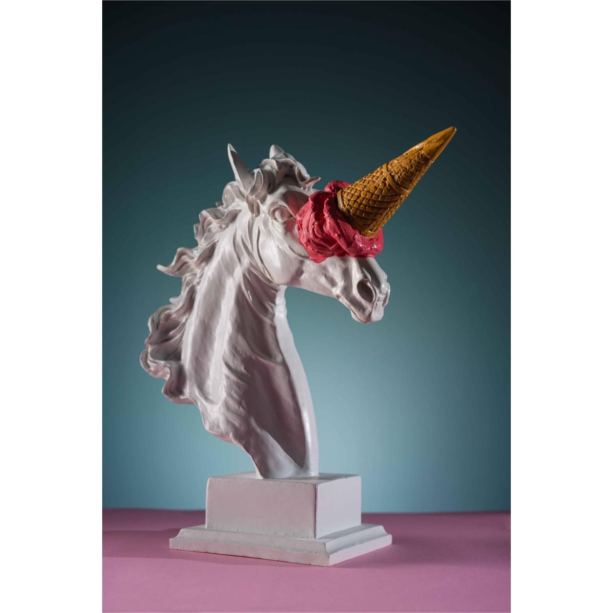 This handmade figure of the horse head looks impeccably created. The vibrant mane plays in the wind and ears are so sharp that they will catch the most delicate noises. This immaculate whiteness is intruded by the raspberry cone-shaped ice cream, turning the horse into a uni-cone. The unicorn is a magical horn that has the ability to heal any sickness. It's said that this mystical artifact was created by a powerful wizard. The unicorn is known for its other impressive properties: it can grant wishes, summon dragons, and make your favorite food taste amazing. So if you're feeling under the weather, don't reach for the medicine cabinet—reach for the uni-cone!