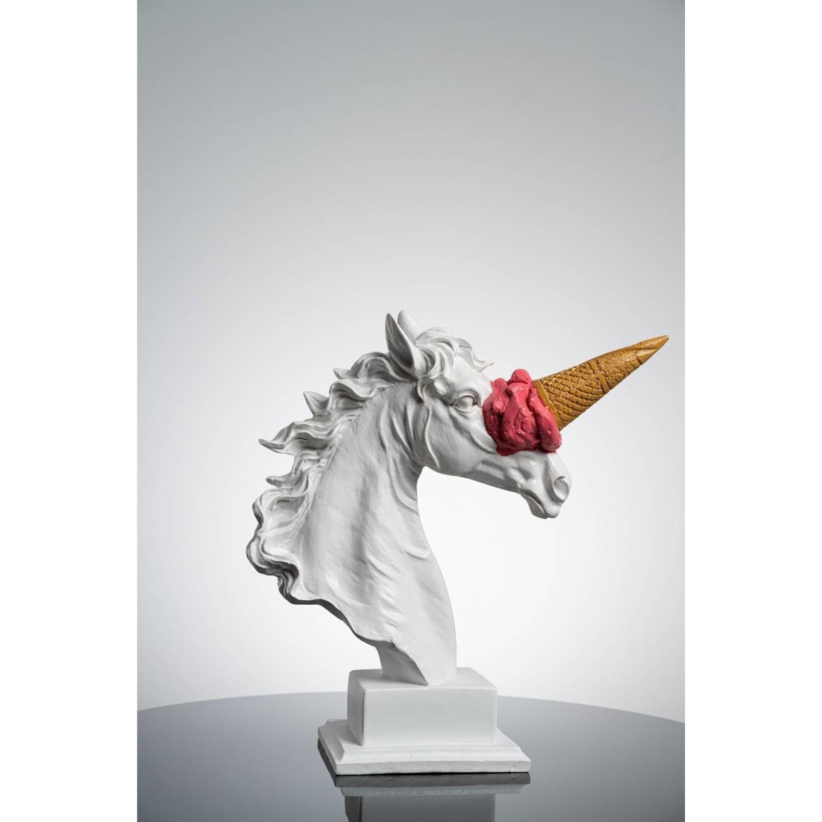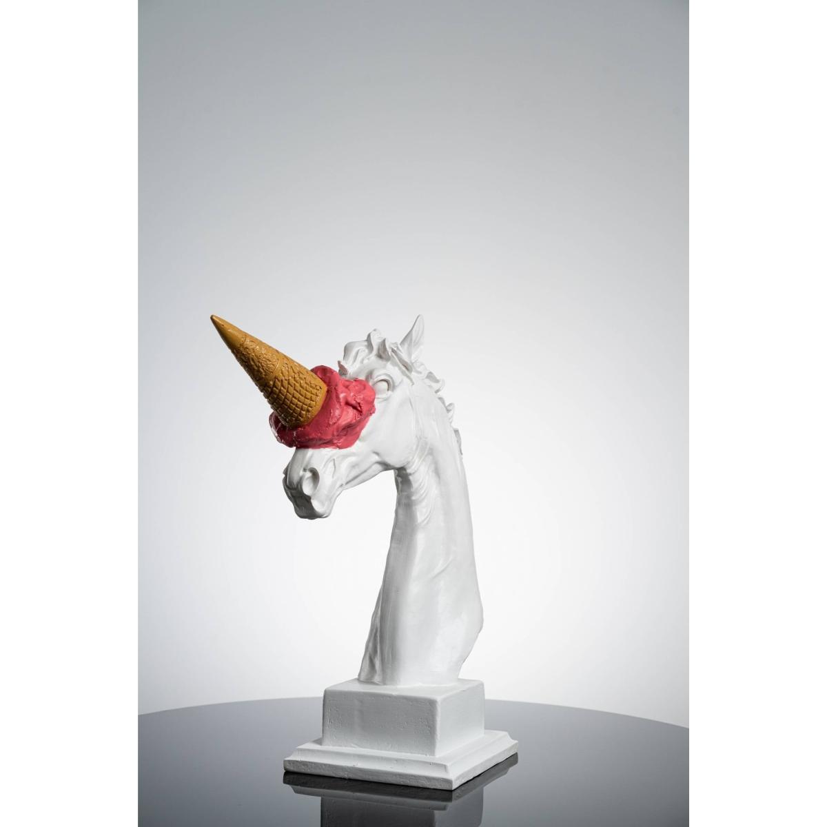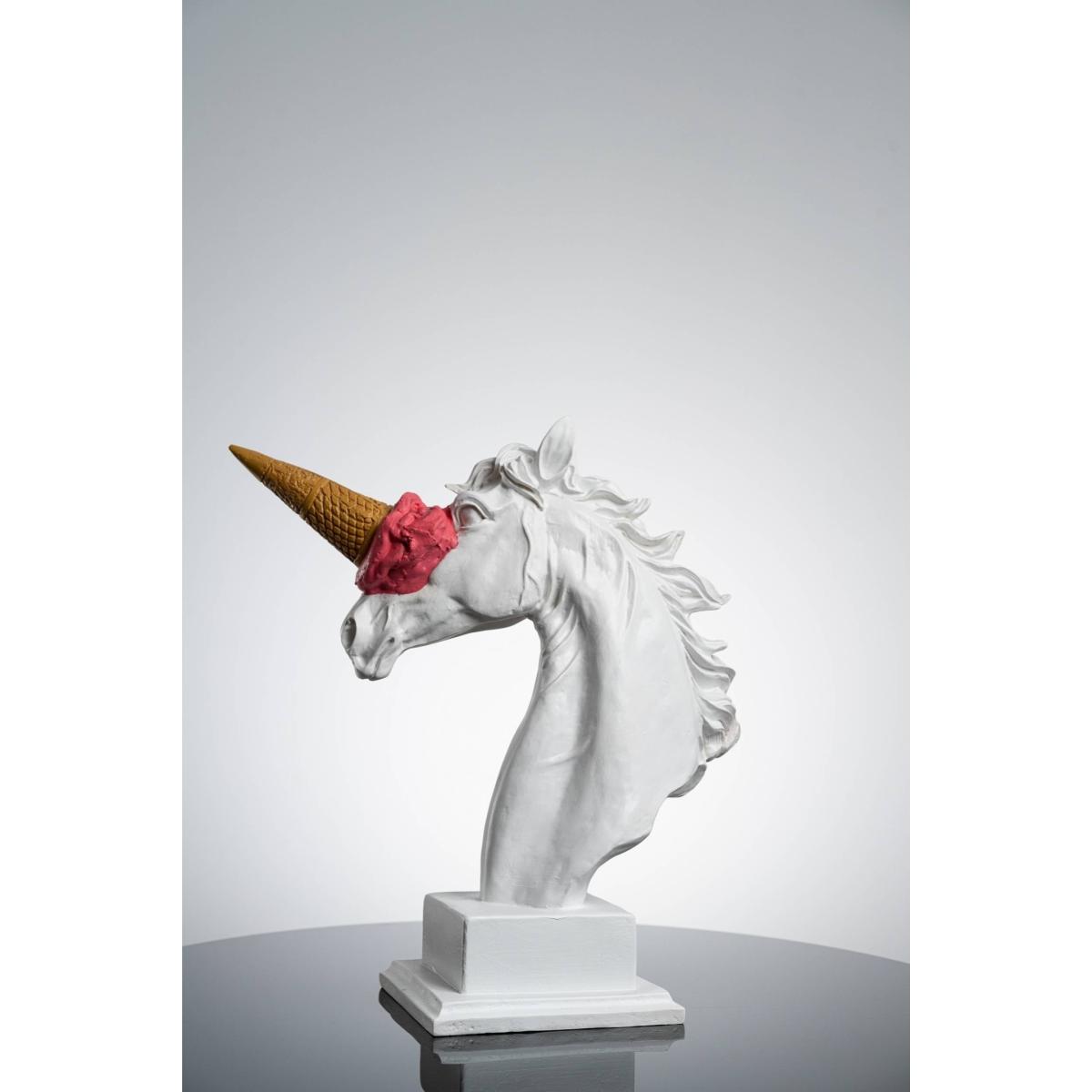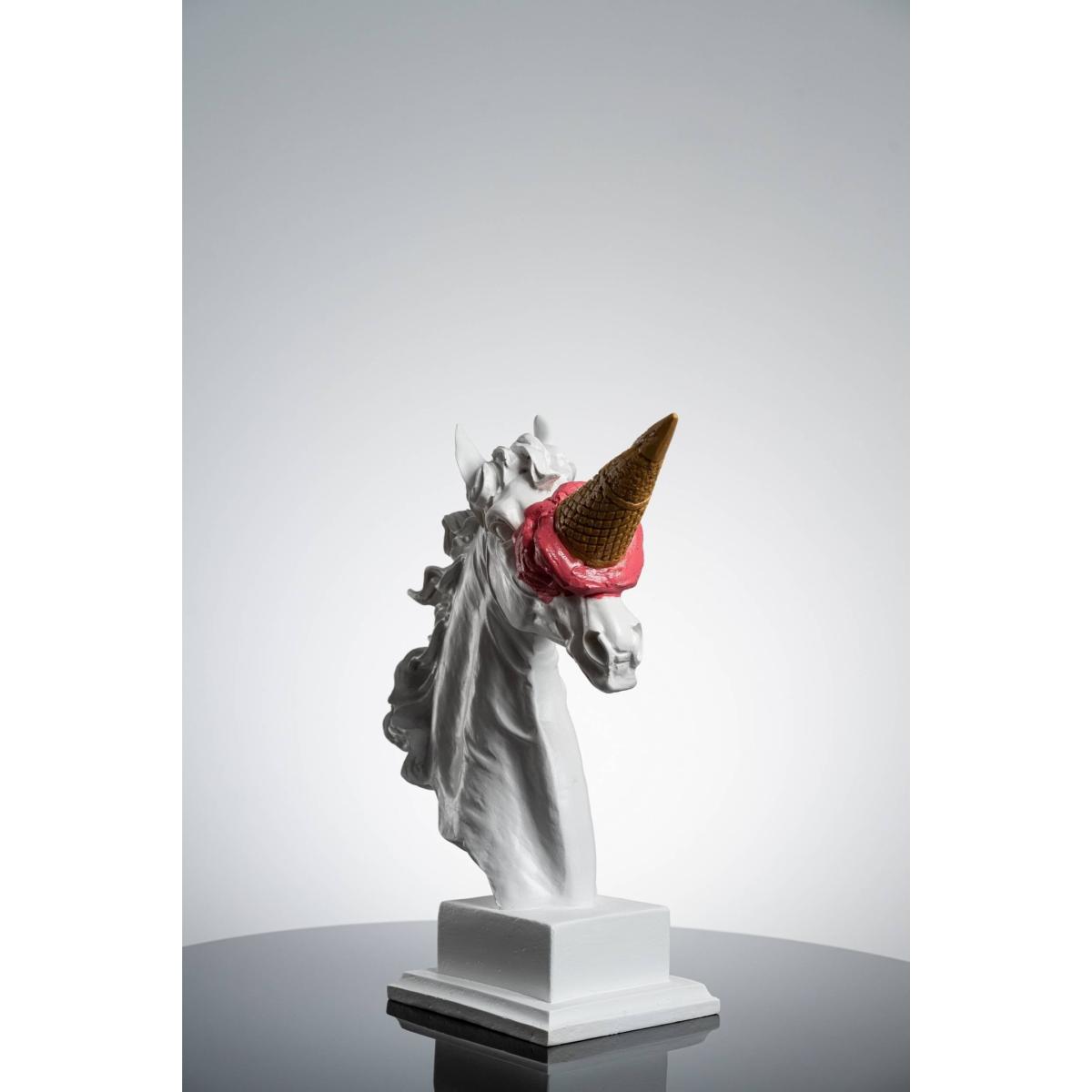 This handmade figure of the horse head looks impeccably created. The vibrant mane plays in the wind and ears are so sharp that they will catch the most delicate noises. This immaculate whiteness is intruded by the raspberry cone-shaped ice cream, turning the horse into a uni-cone. The unicorn is a magical horn that has the ability to heal any sickness. It's said that this mystical artifact was created by a powerful wizard. The unicorn is known for its other impressive properties: it can grant wishes, summon dragons, and make your favorite food taste amazing. So if you're feeling under the weather, don't reach for the medicine cabinet—reach for the uni-cone!