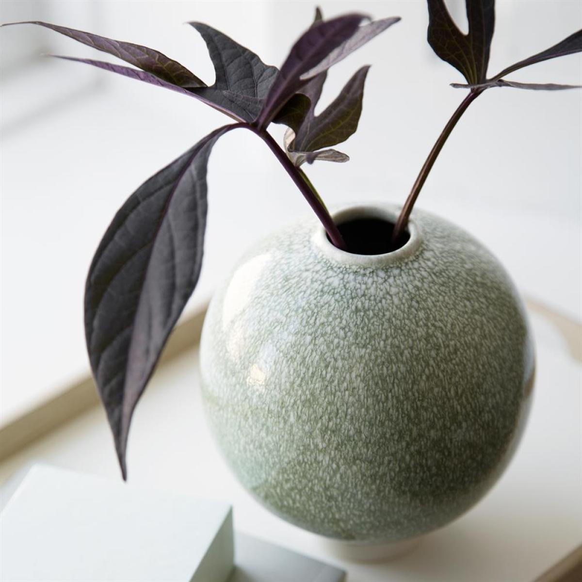 I love the moss green finish of this vase, which lends a subtle pop of colour without feeling overwhelming. It works particularly well in modern, minimalist, or Scandinavian-inspired interiors where natural tones and simple shapes shine. The rounded form adds a soft, approachable feel, making it a versatile piece whether displayed on a shelf, side table, or as a centrepiece. For styling tips, pair it with monochromatic or earthy pots and plants to enhance its understated elegance, or contrast it with bold, colourful blooms for a fresh, lively corner. Its simplicity means it can seamlessly fit into both residential and commercial spaces, adding a touch of organic charm without clutter.