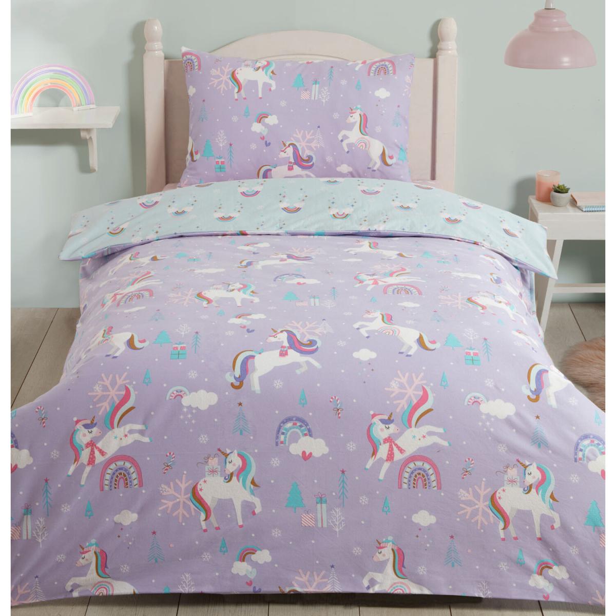 Unicorn and Rainbows Duvet Cover and Pillowcase Set - Purple