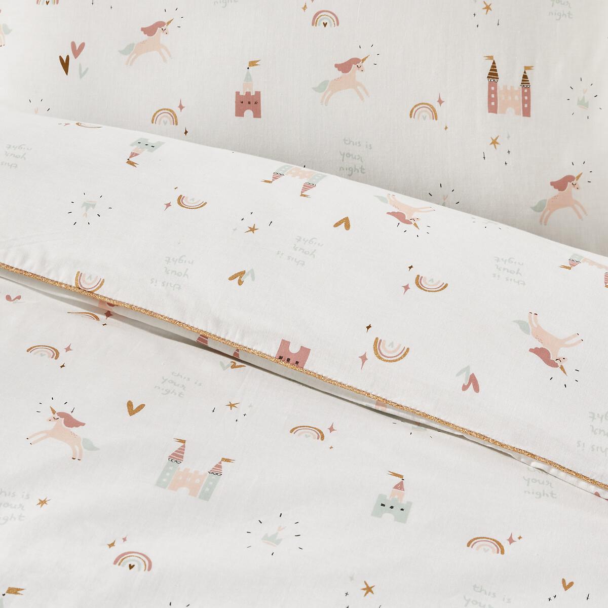 The Unicorn Castle duvet cover will sent little ones to a fascinating land with magical creatures in their dreams. A very soft cotton, a touch of gold... Nothing is too good! Created by La Redoute Interiors.