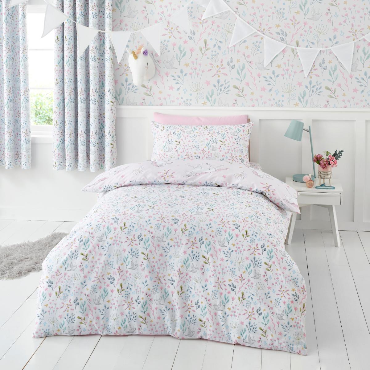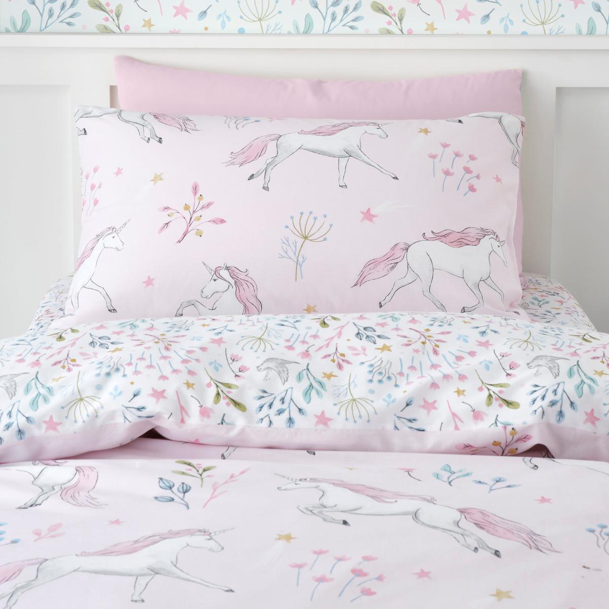 Unicorn Enchanted Duvet Cover and Pillowcase Set Pink/Green/White