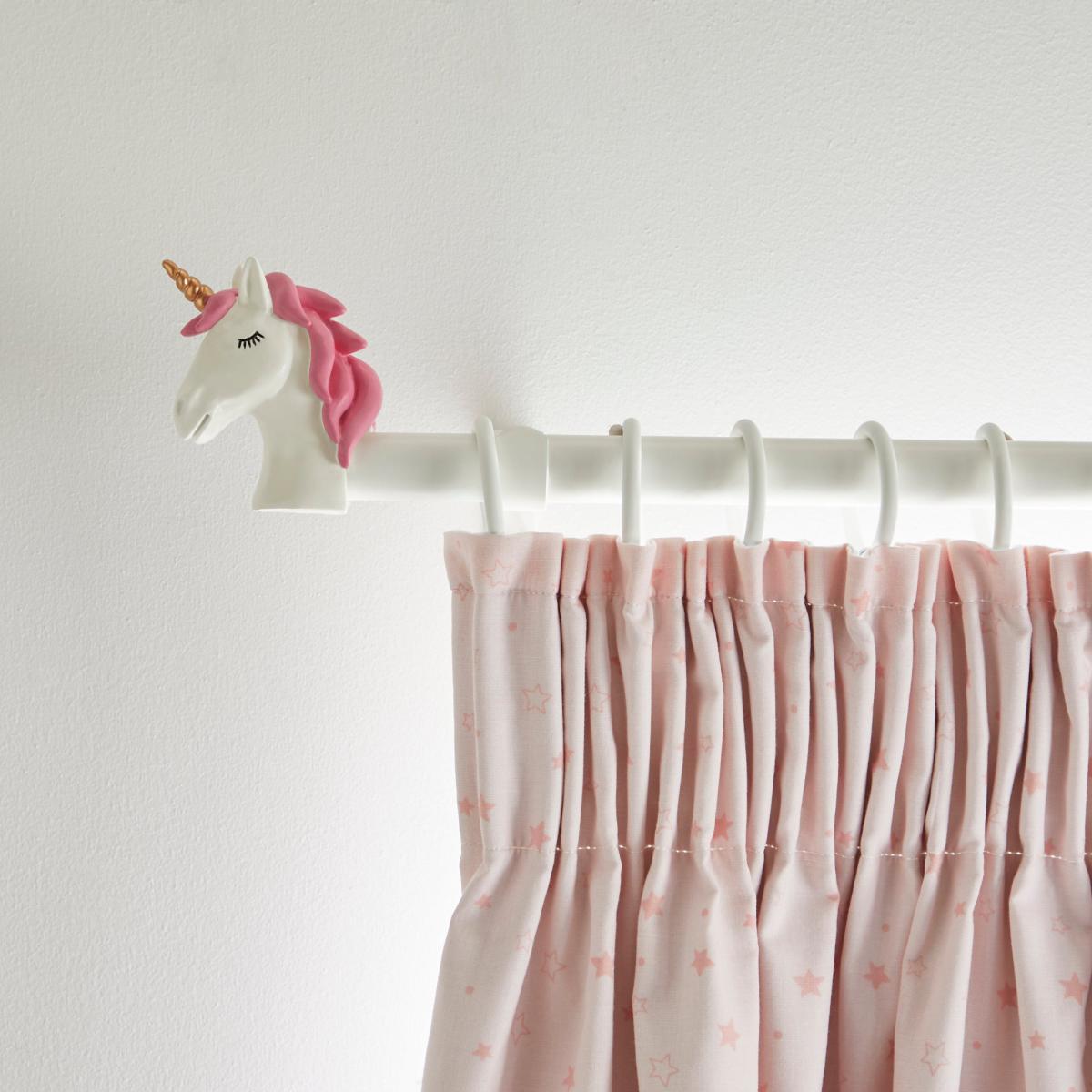 Available in a charming unicorn design, this extendable curtain pole kit comes with unicorn ball finials, curtain rings, brackets and all other fixings. With a 16/19mm diameter, this pole is perfect for light-weight curtains. This pole is easy to install, and matching accessories are available to purchase separately. Please note: All curtain poles in lengths of 240cm and above come in two lengths with a joiner and three brackets. Please note: the pole length stated does not include the finials. Please allow up to an additional 14cm to the pole length to accommodate the finials.