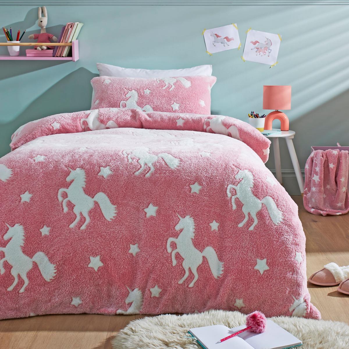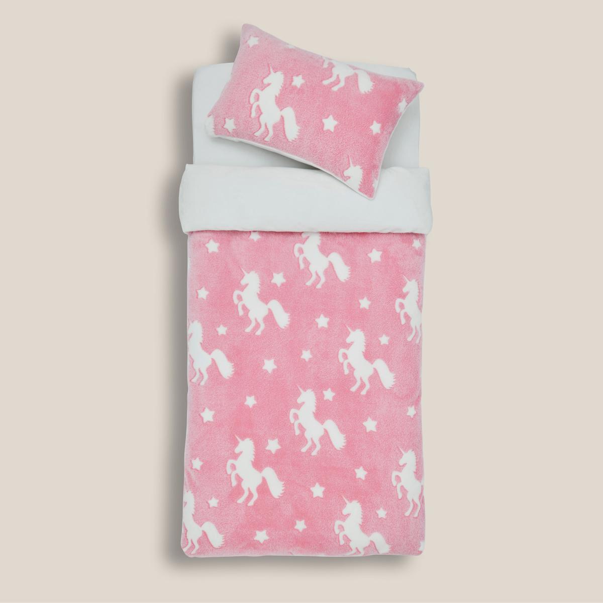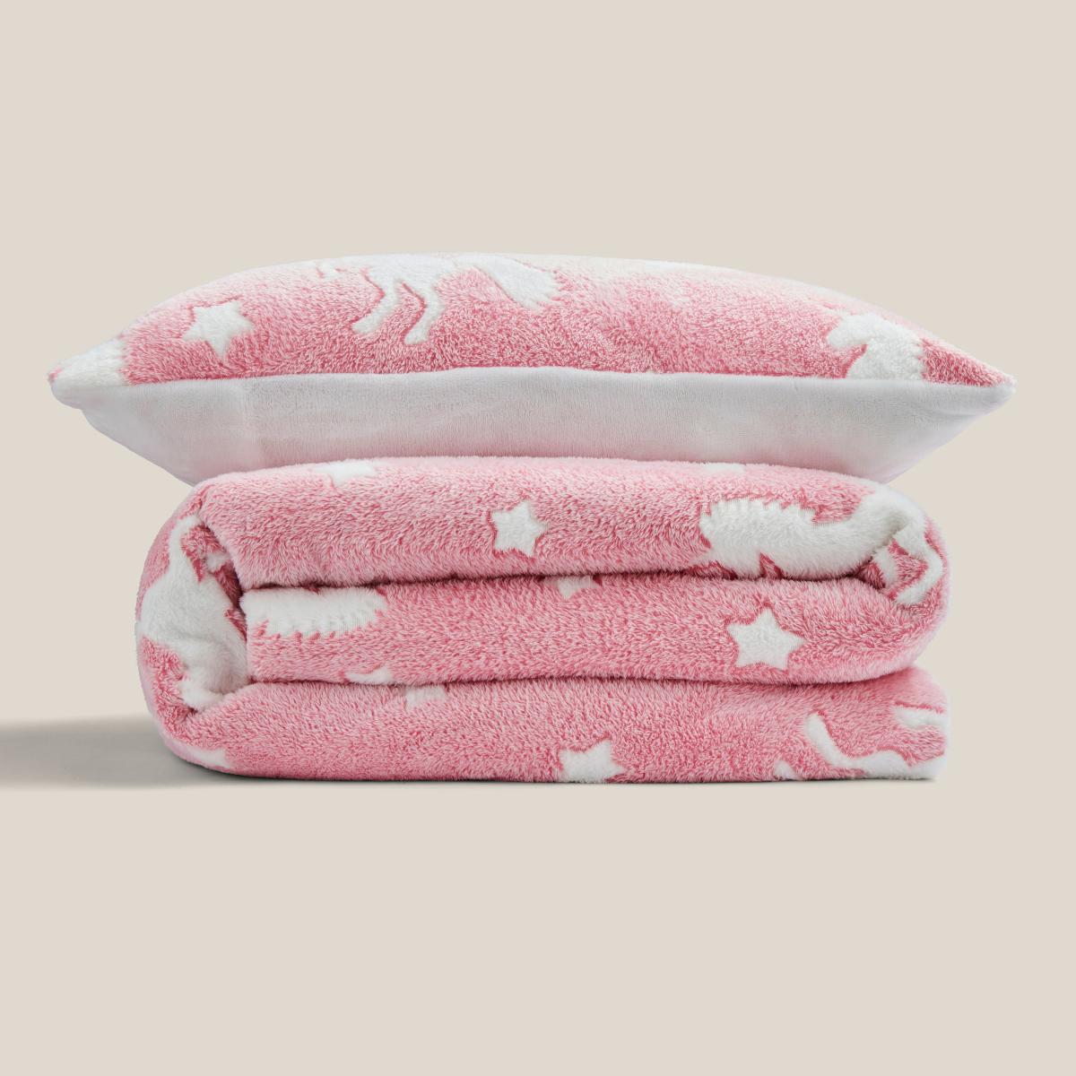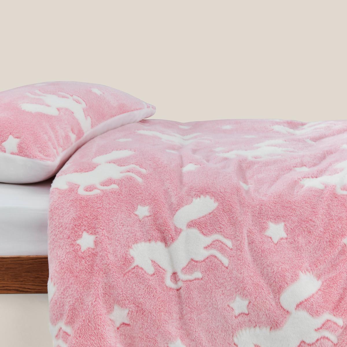 Unicorn Fleece Duvet Cover and Pillowcase Set Pink