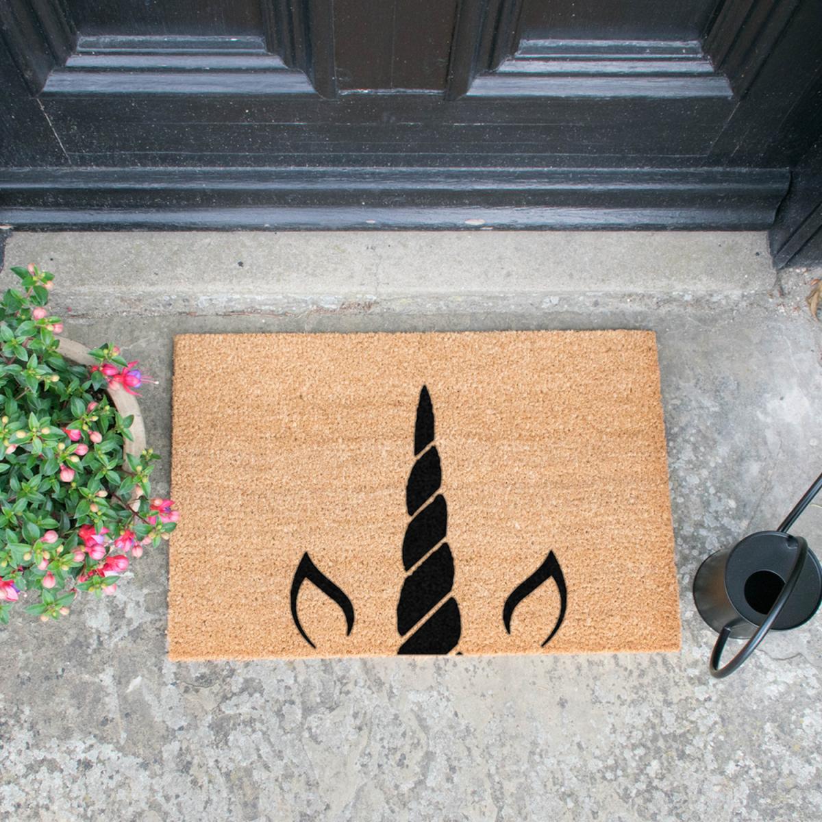 I love this unicorn horn doormat for its playful yet minimal aesthetic, making it a charming addition to a wide range of interiors. Its black design on natural fibre offers a striking contrast that works particularly well in modern or Scandinavian styles, but it can also inject a touch of whimsy into more eclectic schemes. Practicality-wise, it’s great for welcoming guests while helping to keep mud and dirt outside. For styling, consider pairing it with neutral front door colours or bolder shades to make it pop. Avoid placing it on overly polished surfaces to prevent slipping, and keep it clean with regular vacuuming or shaking out to maintain its fresh appearance.