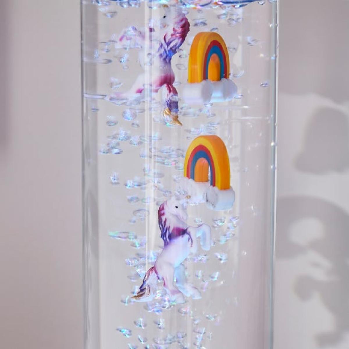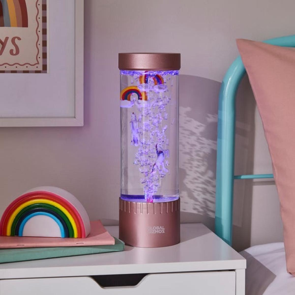 * Unicorn & rainbow pieces * Silver base * Mains operated Add a dash of enchantment to your space with our 32cm Unicorn Lamp. This bubble-style desktop lamp features playful unicorn characters dancing inside, all set atop a sleek silver base. Perfect for kids’ rooms or anyone who loves a little magic, it lights up with a soft, whimsical glow that’s sure to make you smile.