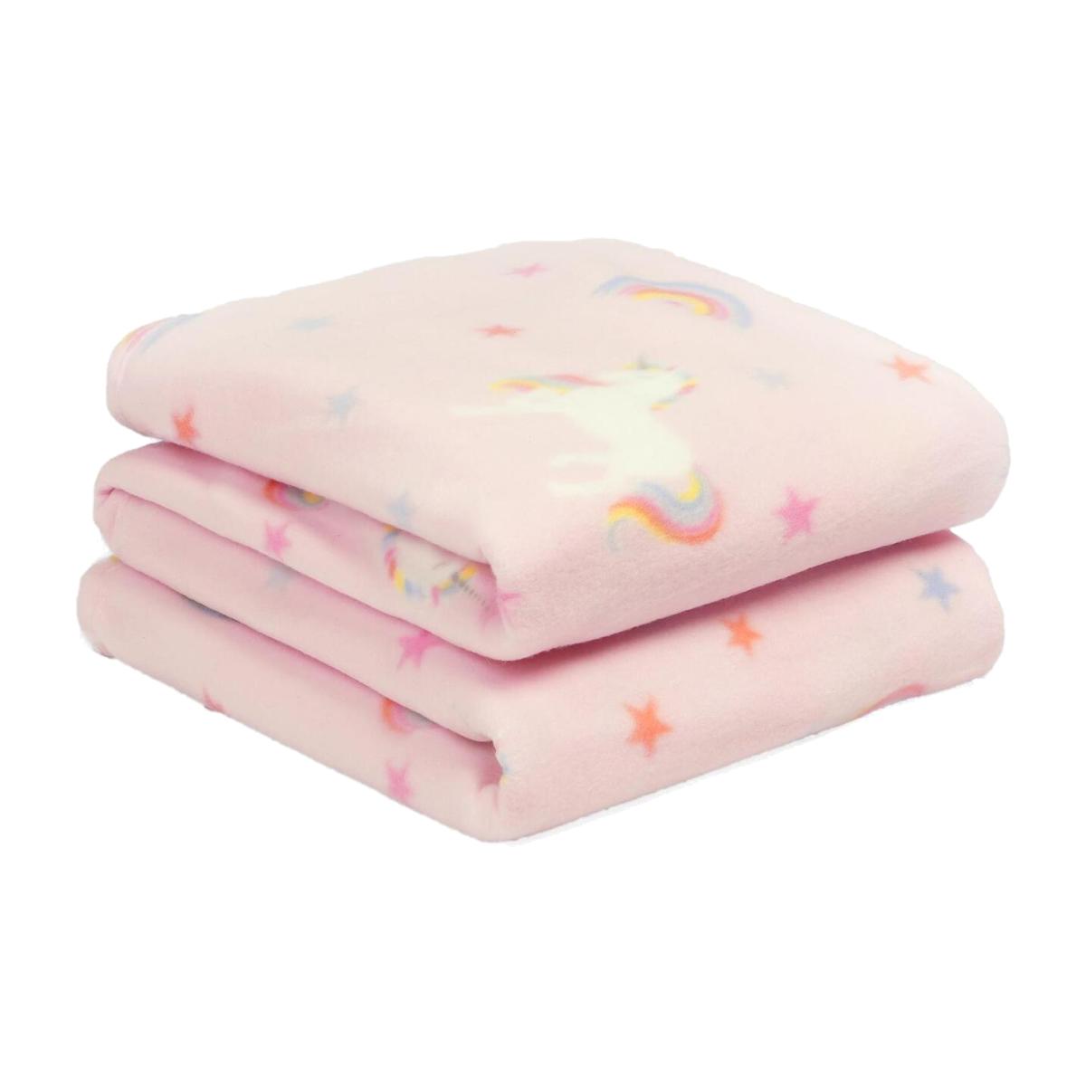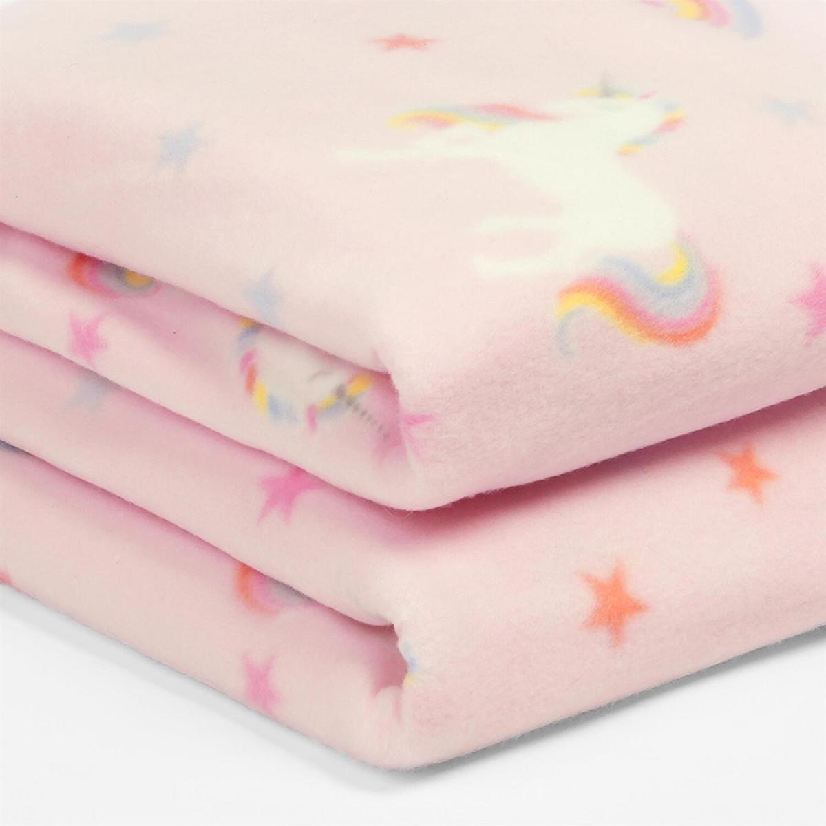 Unicorn Rainbow Print Polar Fleece Throw - Light Pink