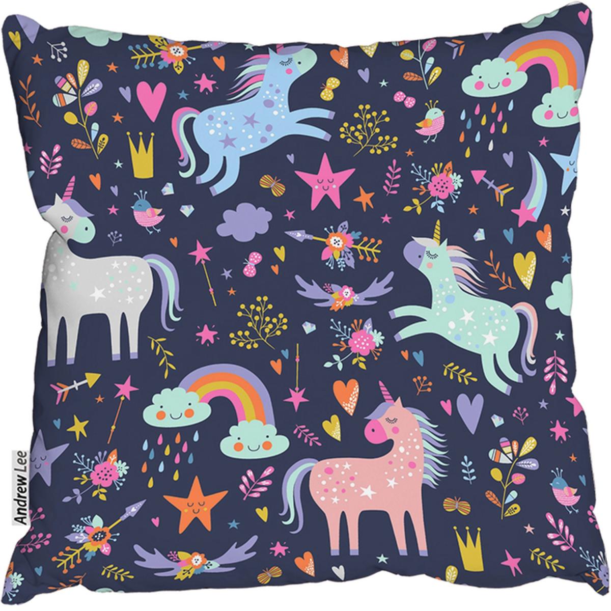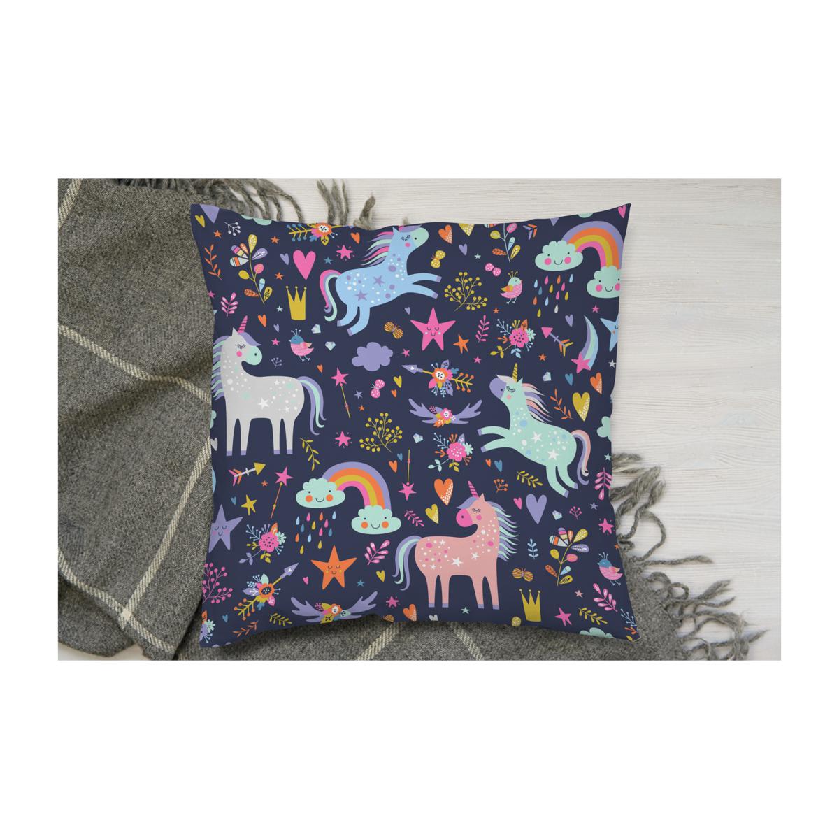 This unicorn on navy cushion is a playful yet versatile addition that works particularly well in children's rooms, eclectic living spaces, or even a cosy nook. I love its vibrant, whimsical design which introduces colour and character without overwhelming the space. It's perfect for adding a pop of colour to neutral sofas or beds, and pairs beautifully with other soft furnishings in shades of pink, purple, or pastel hues. For practical styling tips, try layering it with a textured throw or other cushions in complementary colours to create a curated, inviting look. It's a fun piece that adds personality and works equally well in casual or more styled interiors.