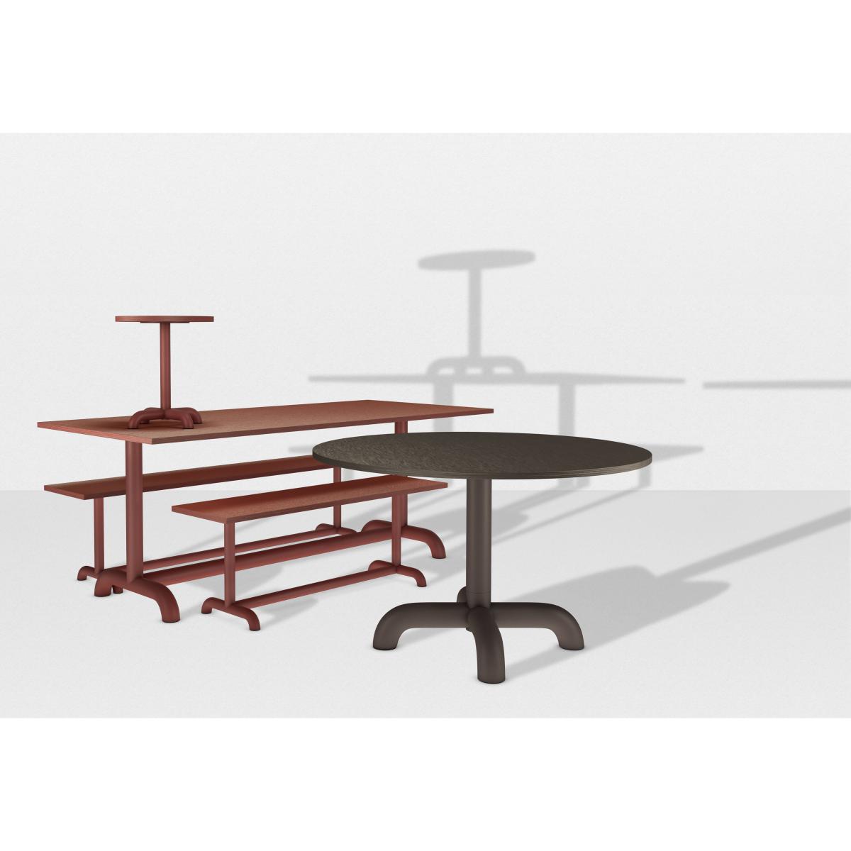 The Unify collection is a set of tables and benches, composed of oak-veneered MDF tops and solid legs made of large steel tubes with soft, rounded profiles. This collection of tables is a nod to the refectory tables from the 90s still found in schools. These tables display a mixture of joyful intensity and remarkable sobriety. Swedish designer Anne Harvala set about demonstrating the notion of balance, playing with proportions. The size of the leg varies proportionally depending on the top for the tables and the size of the seat for the benches. The details are treated with meticulousness, in particular the curvature of the legs. The welds of the latter at right angles are invisible, a real technical feat. Petite Friture is once again positioning itself as a talent scout. Unify is indeed Anne Harvala's graduation project, as was the now cult Vertigo pendant for Constance Guisset.
