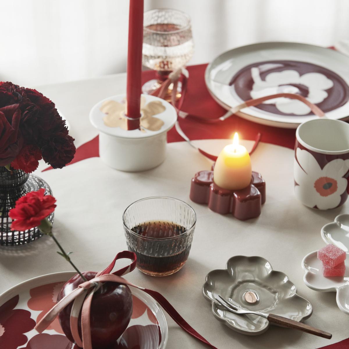 Unikko Candle stick ceramic red / Set of 2 - Marimekko
