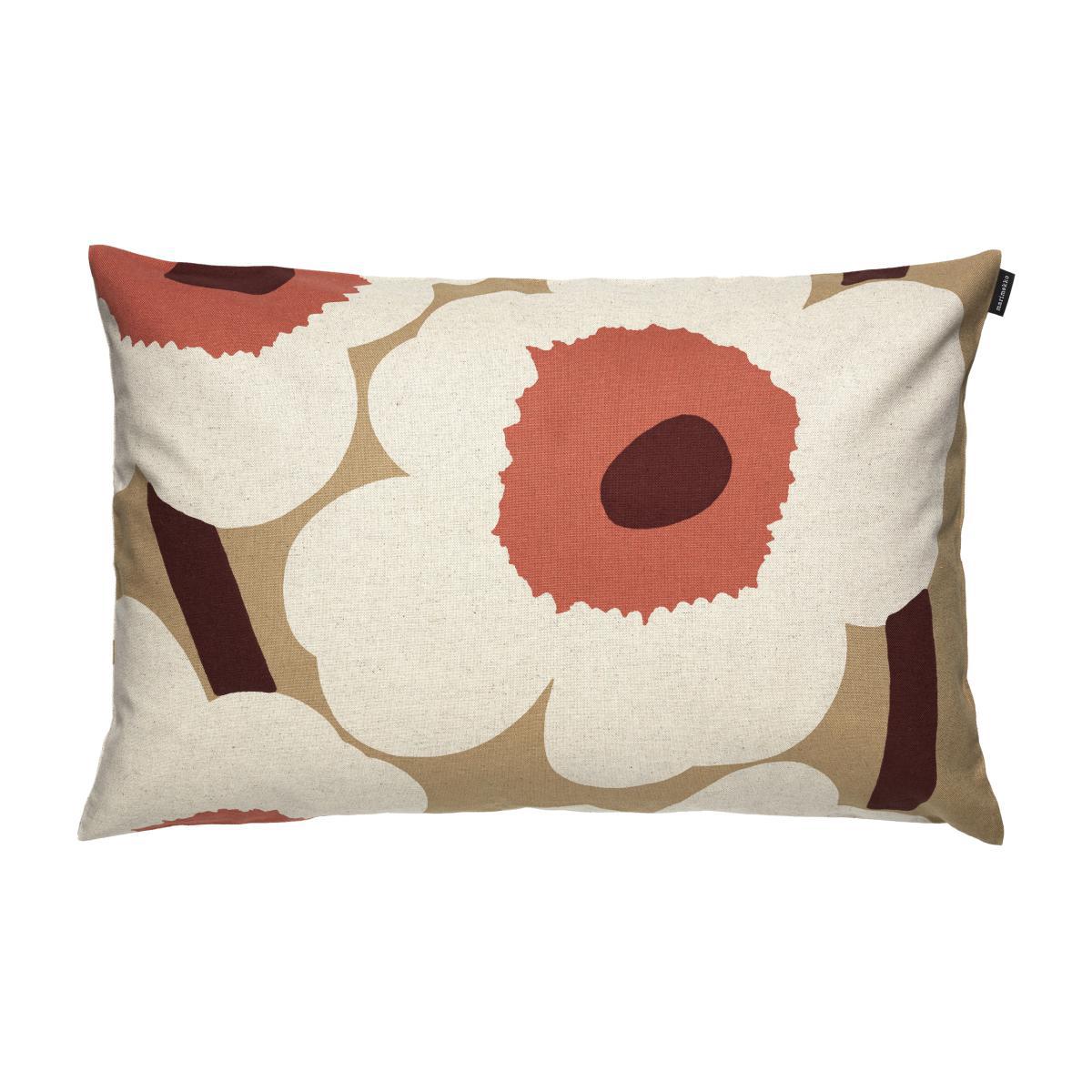 PLEASE NOTE: cushion cover sold on its own (filling sold separately). Maija Isola's iconic Unikko flower motif is the emblem of the Marimekko design house. It was designed in 1964, just after the founder of the Marimekko brand, Armi Ratia, publicly announced that she was banning floral motifs, which were considered hackneyed. Maija Isola defied her by drawing a series of floral designs whose style was so innovative and fresh that Armi changed her mind. Ironically, the Unikko motif has become the emblem of the brand. Chic and graphic, the collection of textiles designed by Marimekko brings new life to your interior! Created in 1951, Marimekko is a state of mind, a way of life based on creativity, freedom of spirit and inventiveness. Its notoriety dates back to 1960, the year in which Jackie Kennedy made several public appearances in dresses designed by Marimekko. The brand went on to enjoy enormous success, which continues today with a range of clothing and decorative accessories in vibrant colours, for a house full of inspiration!.