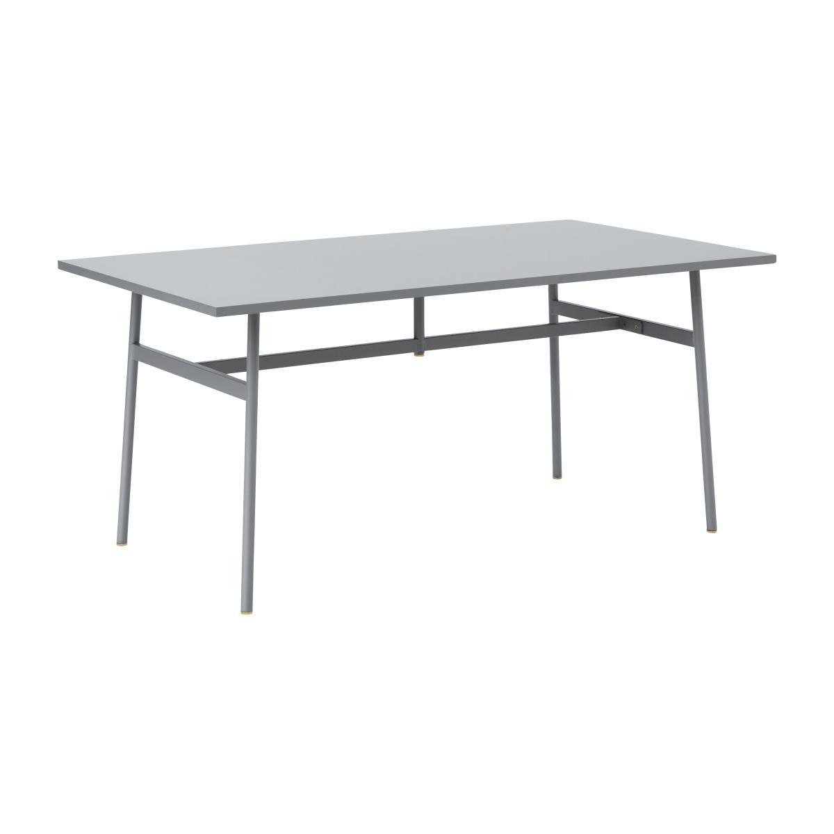 Union is a collection of tables with timeless lines. Presented in different sizes, this table with its large dimensions (160 x 90 cm) is ideal for your meals, to study or simply relax. Union is the centrepiece to gather family and friends around, to meet and share a special moment. Sober and elegant, Union gives the impression of lightness. It consists of a lacquered steel base and a sturdy Fenix laminate top. This material is made from laminate with innovative characteristics: excellent resistance to scratches, stains, impacts and fingerprints. The whole thing comes in a solid colour (white, black or grey), enhanced by little brass details adding a nice touch of glamour.