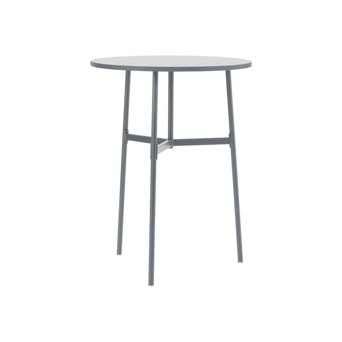 Union is a collection of tables with timeless lines. This large bar table (Ø 80 x H 105. 5 cm) is ideal in your kitchen or living room. Union is the centrepiece to gather several people around, to meet and share a friendly moment. Sober and elegant, Union gives an impression of lightness. It consists of a lacquered steel base and a sturdy Fenix laminate top. This material is made from laminate with innovative characteristics: excellent resistance to scratches, stains, impacts and fingerprints. The whole thing comes in a solid colour (white, black or grey), enhanced by little brass details adding a nice touch of glamour.