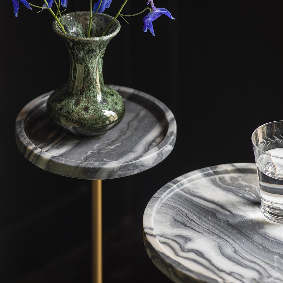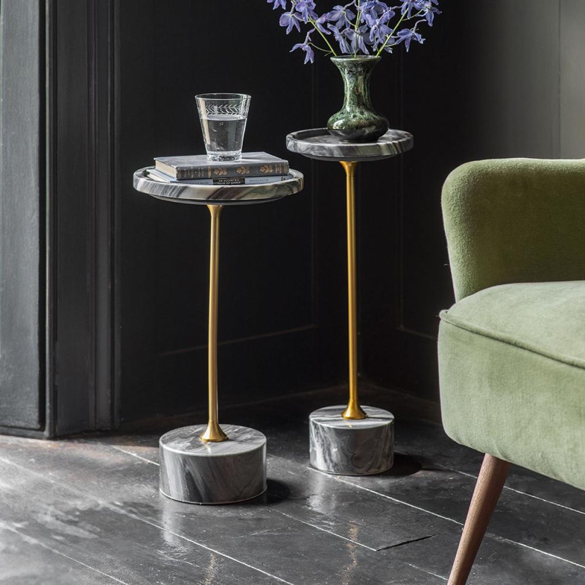 I’m a fan of how these black marble side tables combine a solid, sculptural base with a slender brass stem - they bring both substance and lightness to a room. They sit equally well in a minimalist living space, a luxe art-deco setting or even an industrial loft, pairing best with muted tones, deep greens or rich blues. Styling tip: keep them uncluttered - a single book or small tray, a stem vase or glass of water is all you need to let the marble’s veining stand out. Use one beside an armchair as a drinks table, or pair two at different heights to fill an awkward corner without overwhelming the space.
