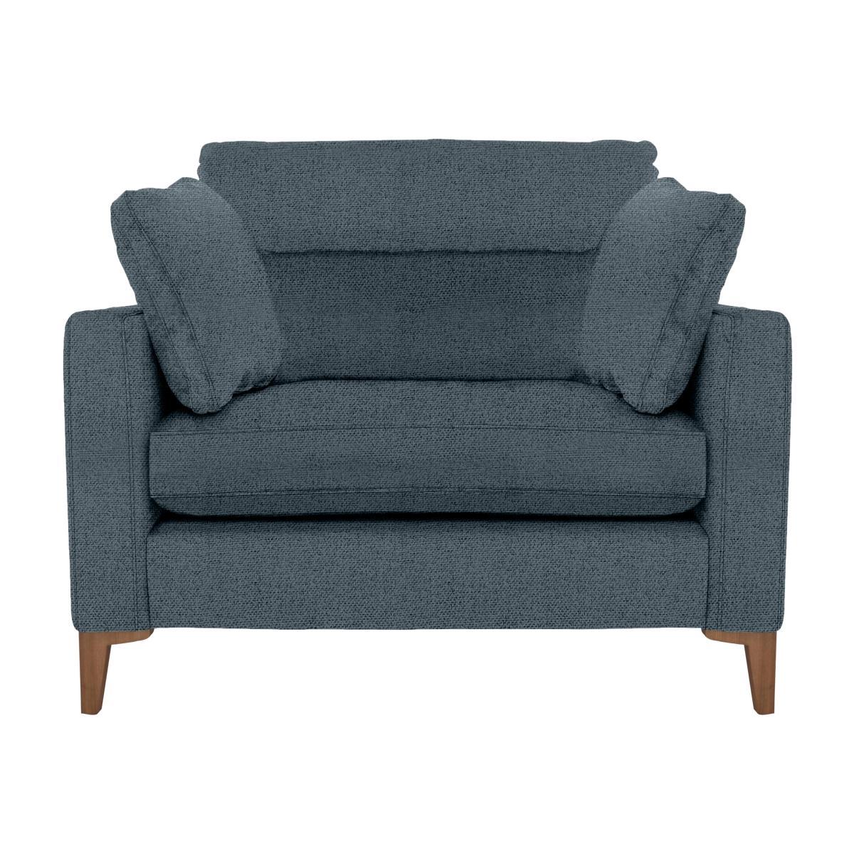 Discover stunning contemporary style with the sleek, clean lines of the beautiful Uniqa collection. Feather cushions upholstered in a super-soft herringbone weave or two-tone velvet offers a truly comfortable sit. Its elegantly tapered legs in hardwood or brushed chrome lend a light, contemporary feel to this range’s clean, open design - perfect for the modern home. Its handmade British design quality offers outstanding features like a handy USB port, so you can plug in, sit back and relax. You’ll find a selection of stunning sofas, chairs and footstools to create your perfect seating area. Exclusively available at Furniture Village. The UK’s first open base snuggle chair with power foot recliner. Beautiful herringbone weave and velvet fabrics. Ultra-comfy high density foam and fibre seat cushions. While away the hours in perfect comfort with the Uniqa Fabric Power Recliner Snuggler Chair. With its contemporary design and high brushed chrome or hardwood legs, this is a chair that simply oozes with sleek, modern style. Enjoy the sumptuous feel of reversible seat cushions all to yourself or cuddle up with someone you love. Indulge in the exquisite softness of natural herringbone weave or velvet upholstery while you sink into its deep, sprung seats, with high density foam with fibre wrap fillings for your comfort. Handcrafted in the UK, its unique power motion open base footrest lets you stretch out in style at the touch of a button. The snuggler chair has a useful USB port and included are two contemporary scatter cushions, perfect for adding extra comfort. Only available at Furniture Village, the Uniqa Fabric Power Recliner Snuggle Chair is part of the Uniqa range. Top tip. Some fabrics can show wear on areas of more use or in direct sunlight. To keep your fabric upholstery looking fresh, plump, turn and rotate seat and back cushions regularly if possible.