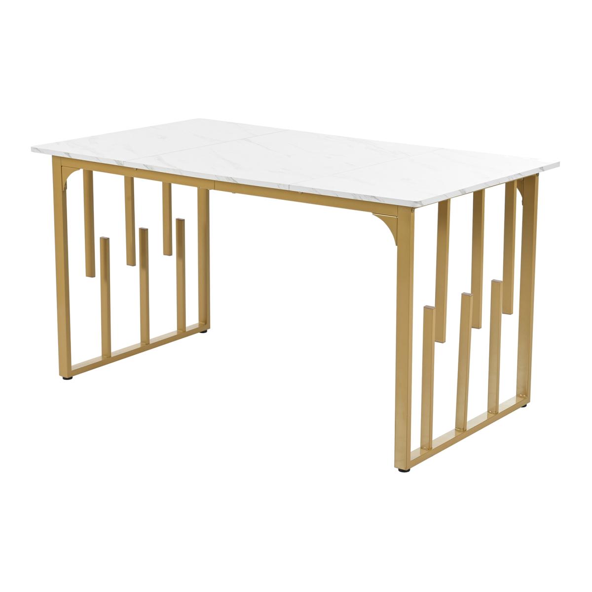 The dining table with a modern marble pattern that provides a unique and fashionable appearance. Creates a unique artistic atmosphere and gives your kitchen a special style. Not only a dining table, but also the ideal choice for modern kitchens. It is suitable for various purposes, from shared meals to use as a work area. A sturdy and durable metal frame is used, which provides reliable support to the dining table and guarantees a long service life. The specially designed table leg with adjustable foot allows adaptation to different occasions and floors to ensure stable use in any situation. Whether in the dining room, living room or office, this modern rectangular dining table fits perfectly and adds sophistication and style to your living space.