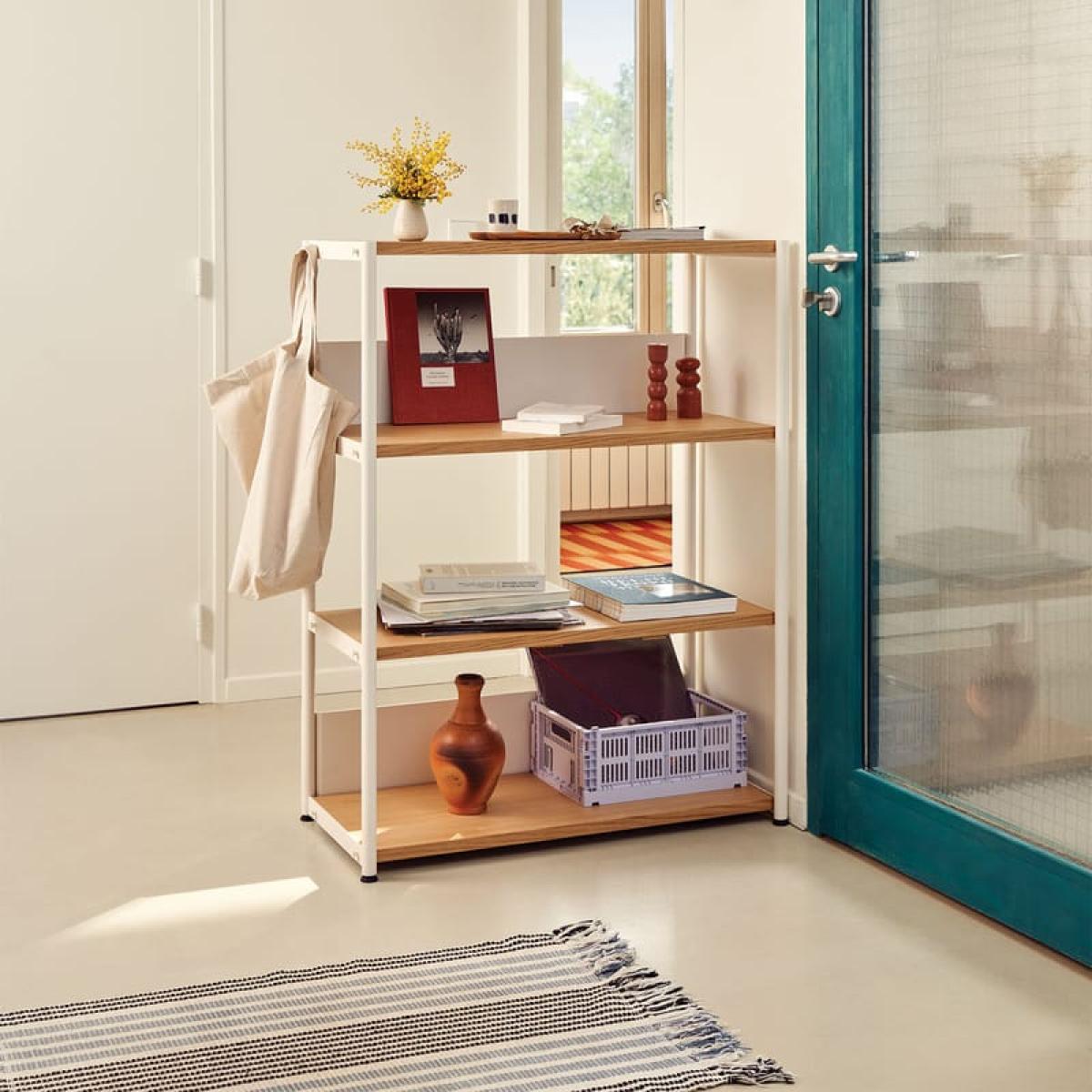 I love this unit because of its minimalist industrial aesthetic, which makes it versatile for a variety of interiors, from modern apartment spaces to more industrial or loft-style schemes. Its black metal frame provides a sleek, durable structure, while the wooden shelves add warmth and texture. It works well as a functional piece in living rooms, kitchens, or home offices-perfect for displaying books, plants, or decorative objects. Practical styling tips include layering items of varying heights and textures for visual interest, and pairing it with other black metal accents for a cohesive look. Its upright, open design also ensures it doesn’t visually bulk up a space, making it an excellent choice for smaller rooms.