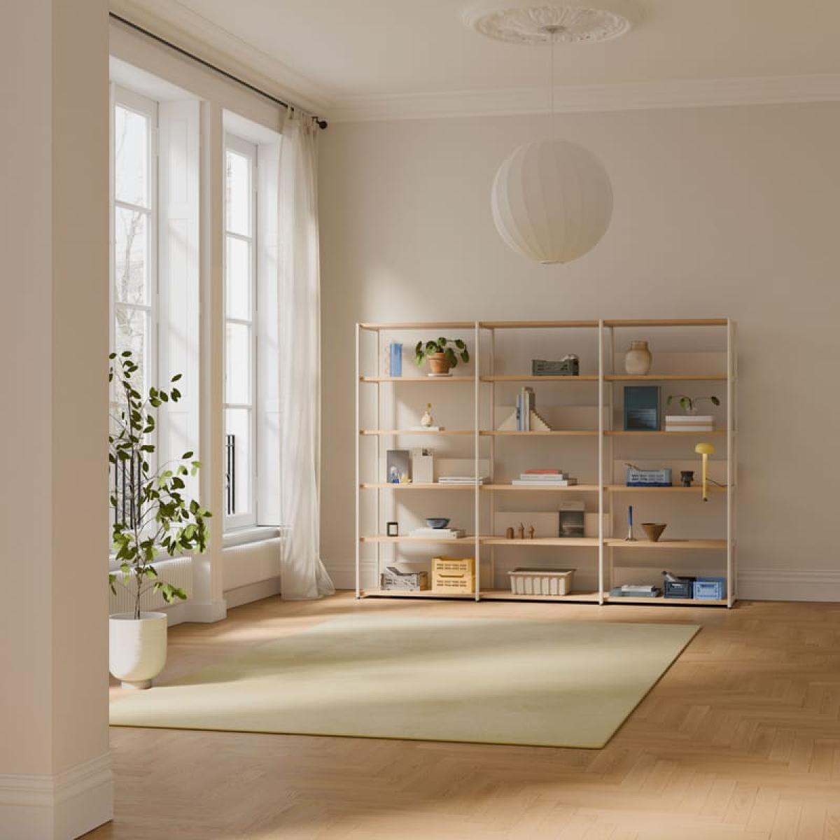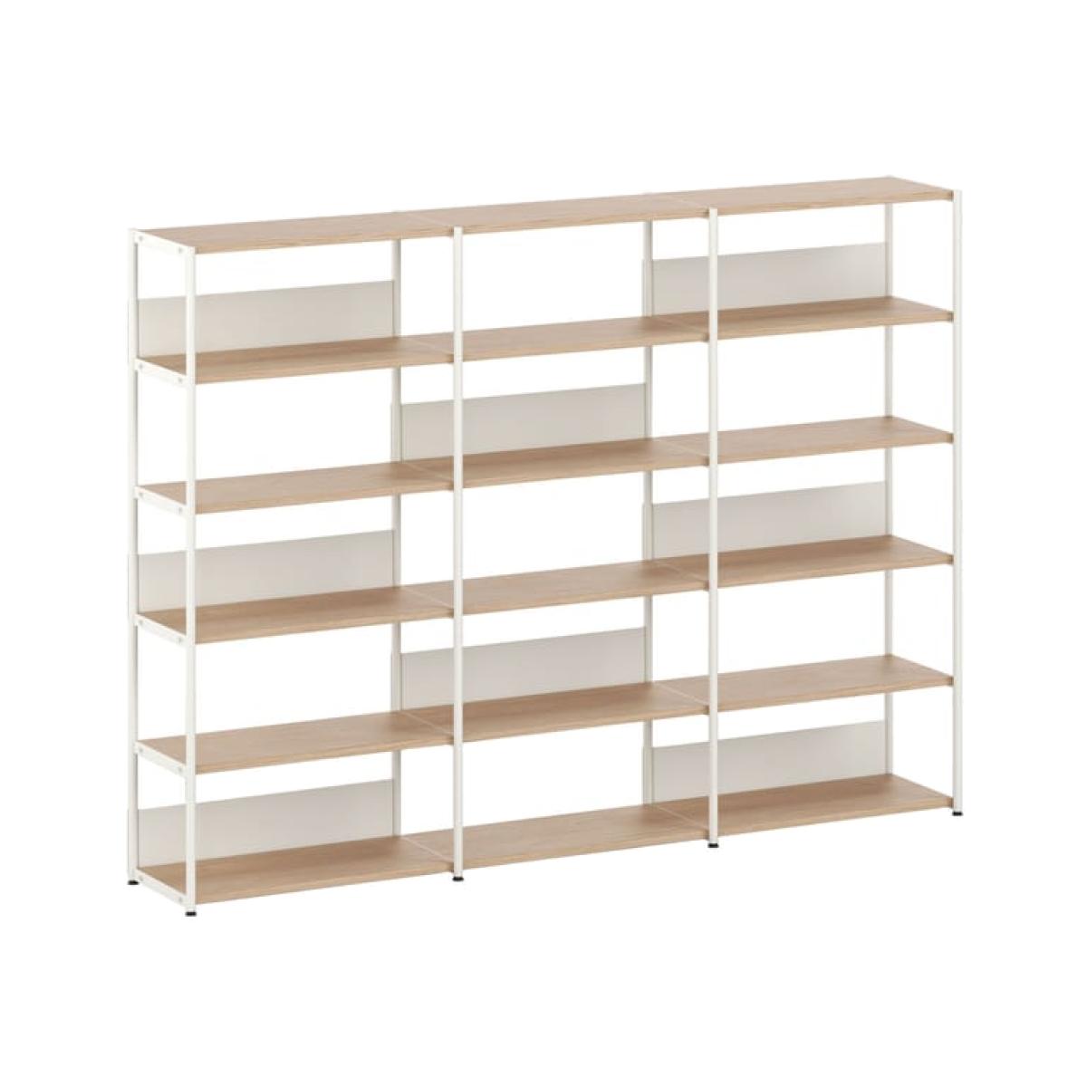 The UNIT Storage system is distinguished by its elegant, functional design. It consists of Oak shelves that simply fit into Steel ladders, forming an intuitive, visible construction. The structure is secured by steel brackets positioned between each ladder, which are screwed in place with an Allen key (supplied). Fastening clips eliminate the need for screws, making assembly quick and easy. UNIT is available in different heights and lengths, with or without doors... UNIT can be used in any room of the house: as a bookcase, chest of drawers, sideboard, TV cabinet, hallway unit or simple shelf...UNIT is a modular shelving system that stands the test of time. UNIT is made up of just a few components, guaranteeing modularity, repairability and recyclability. UNIT is produced in 100% Europe: the shelves are made from FSC-certified Natural oak, and the structure from powder-coated steel. UNIT is delivered Dish to limit our environmental impact during storage and shipping. The ladders feature positioning pins onto which the shelves are easily clipped. Every element of the UNIT system has been designed for optimum use. Each shelf is equipped with adjustable jacks to adapt to uneven floors. Doors and drawers feature elegant folded steel handles. Cable guides (5cm opening) are located at the bottom of the doors. Each shelf can support a maximum load of 30 kg, correctly distributed over the entire surface. The UNIT shelving system is modular and can evolve over time according to your needs. If you would like to upgrade your UNIT shelving system with an additional column, drawers or doors, please contact our customer service department, who will be happy to help you with your project. Wall-mounting is recommended for heights over 110cm and for configurations with drawers and/or doors. Wall-mounting brackets are included, but screws and plugs are not (you'll need to provide your own). In detail: Variation : Cream white / Oak Brand : TIPTOE Type : Bookcase Colour : Structure:Cream white - Shelves: Natural oak Material : Structure: powder-coated steel - Shelves: FSC eco-certified oak Dimensions :W 244 x D 42 cm x H 215 cm Weight : 336.6 lb Characteristics :Modular shelving system - Delivered unassembled (simple assembly with clips) - Sturdy, durable materials, 100% made in Europe - Eco-certified Wood - Adjustable jacks to adapt to uneven floors - Wall-mounting recommended (brackets included) - Maximum load: 30 kg per shelf. Show less