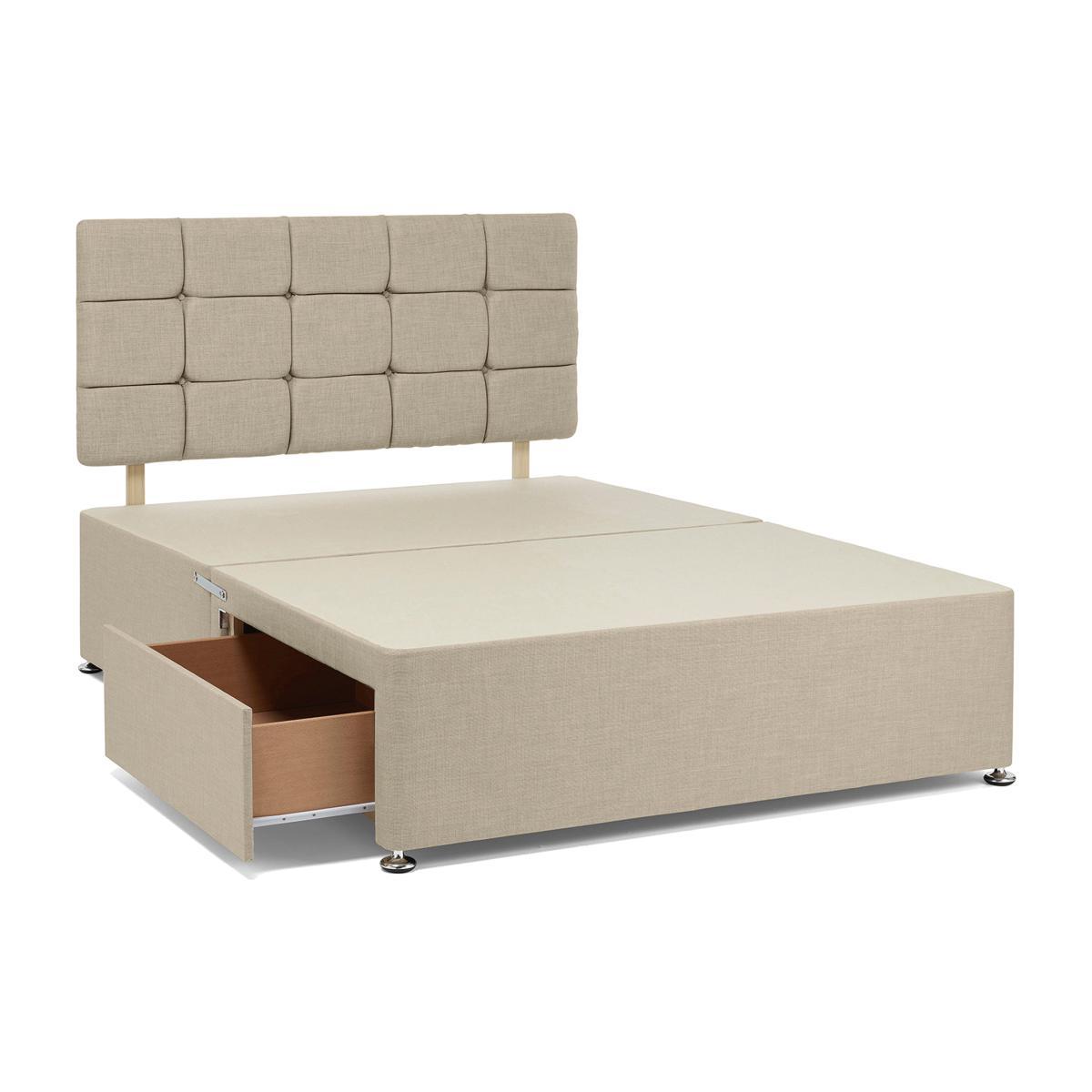 Universal 2 Drawer Linen Divan Base with Headboard Cream