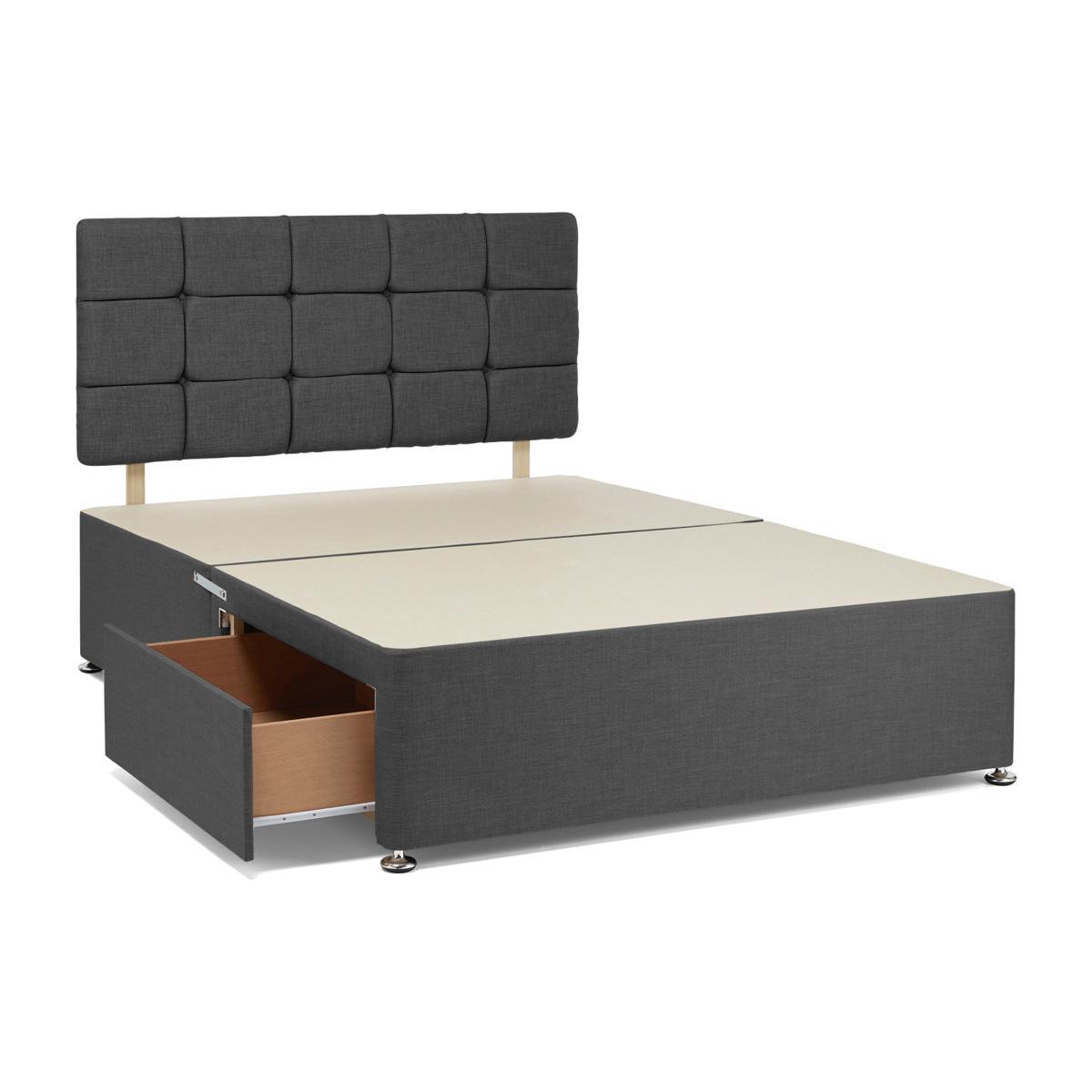 Universal 2 Drawer Linen Divan Base with Headboard Grey