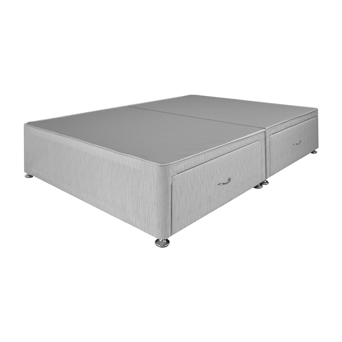 This product will be dispatched by one of our trusted suppliers. You’ll be contacted by their selected courier about your delivery. Airsprung’s Universal Divan range is available in black or grey damask fabric and is designed to complement any Airsprung mattress-only option or can be bought on its own. Available with and without built in storage they are of sturdy all-timber construction. The Universal Divan base is made using the very best materials and demonstrates the highest standards of workmanship. Stylish silver glides add a touch of extra class to finish the look. Universal Divans are available in standard UK sizes. Divan Base: High quality damask on pine frame. Divan Feature: Chrome Glides. Guarantee: Manufacturer's warranty: 1 year with an additional 4 years reduced warranty. Peace of Mind: National Bed Federation Accredited. Fire Accreditation: Meets all UK Fire Regulations. Product Dimensions:Double: Length: 190cm x Width: 135cm x Height: 39cm. King: Length: 200cm x Width: 150cm x Height: 39cm. Super King: Length: 200cm x Width: 180cm x Height: 39cm. Please measure your available space before ordering. Packaged Dimensions:Double:Parcel 1 Packaged Dimensions 97cmx 137cmx 33cm Weight: 24.2kg Parcel 2 Packaged Dimensions: 137cmx 97cmx 33cm Weight: 24.2kgKing:. Parcel 1 Packaged Dimensions 102cmx 152cmx 33cm Weight: 24.5kg Parcel 2 Packaged Dimensions: 152cmx 102cmx 33cm Weight: 24.5kg Super King:Parcel 1 Packaged Dimensions 202cmx 92cmx 33cm Weight: 27.2kg Parcel 2 Packaged Dimensions: 202cmx 92cmx 33cm Weight: 27.2kg.