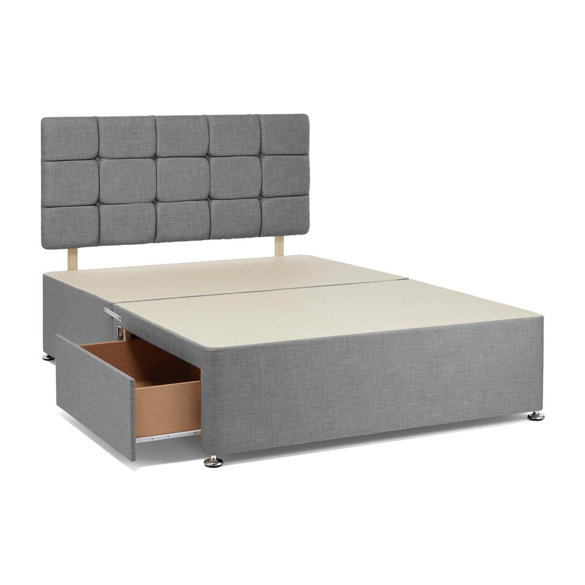 Universal 4 Drawer Linen Divan Base with Headboard Grey