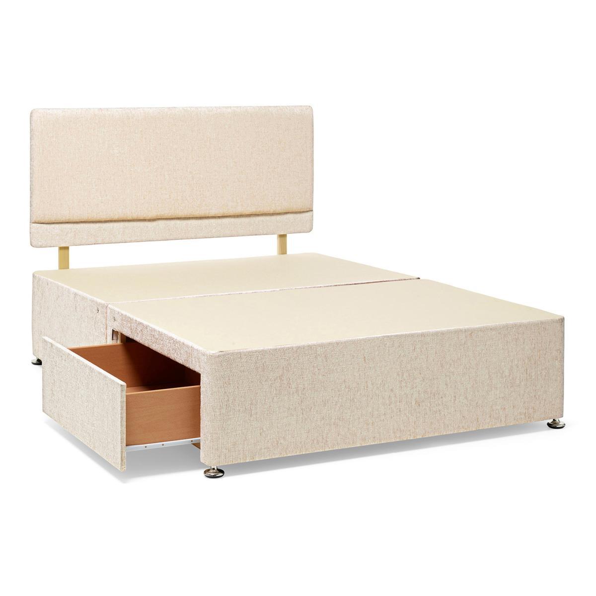For the ultimate style and storage solution for your bedroom, look no further than the Universal Linen Divan Base. Providing support and a firm foundation for your mattress, the base is solidly built, with chrome glider feet adding a beautiful finishing touch. Available in a wide range of colour, size and storage options to suit any bedroom. Please note, Price is for divan base only and does not include the headboard. Please note, unfortunately we cannot deliver this item to the Channel Islands.
