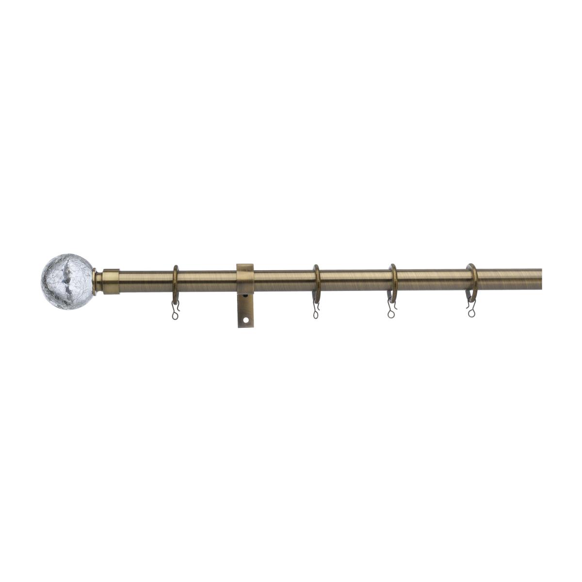 Universal Crackled Glass 19mm Extendable Curtain Pole Antique Brass