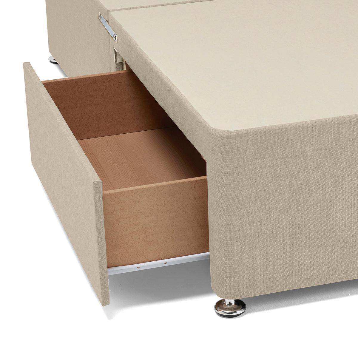 For the ultimate style and storage solution for your bedroom, look no further than the Universal Linen Divan Base. Providing support and a firm foundation for your mattress, the base is solidly built, with chrome glider feet adding a beautiful finishing touch. Available in a wide range of colour, size and storage options to suit any bedroom. Please note, Price is for divan base only and does not include the headboard. Please note, unfortunately we cannot deliver this item to the Channel Islands.