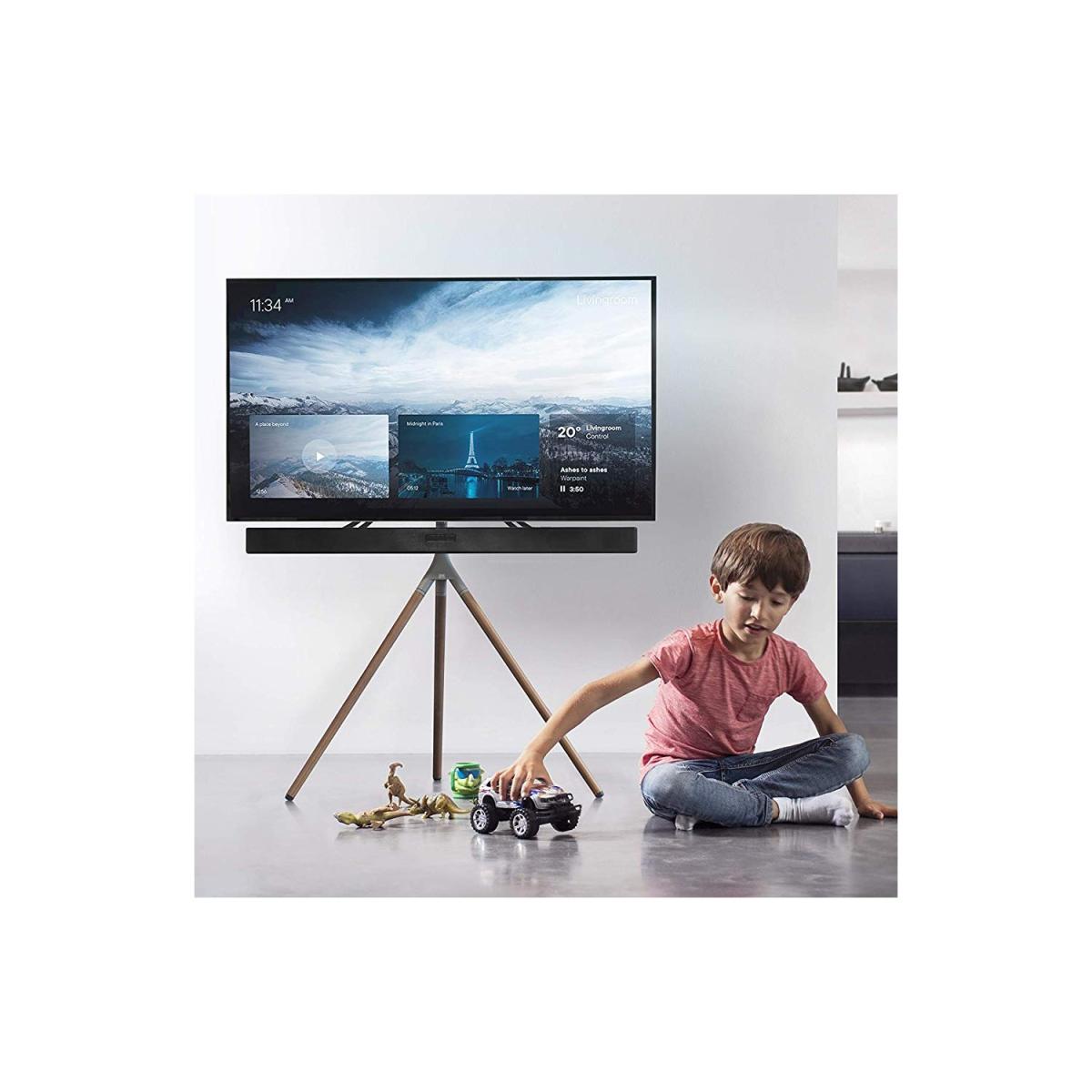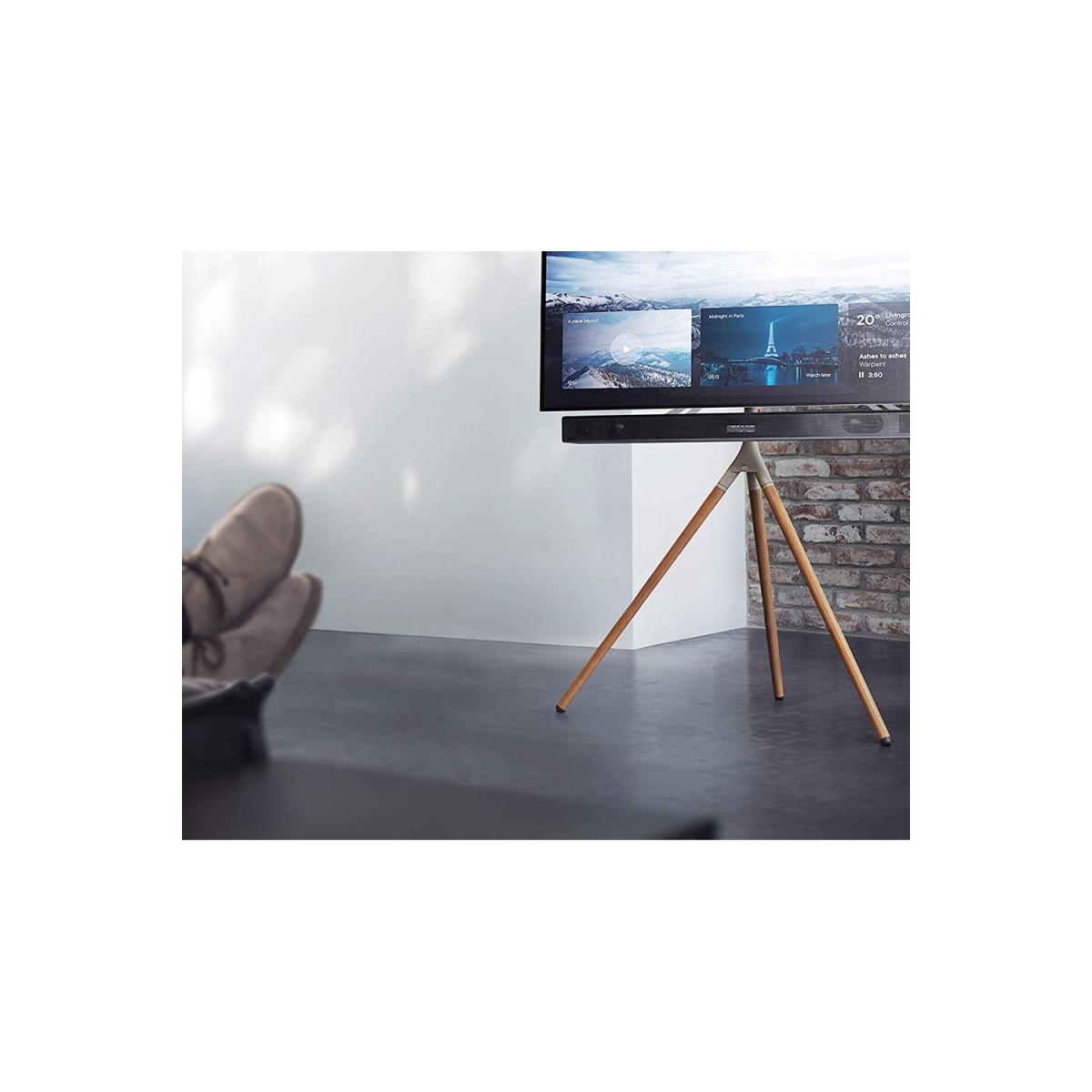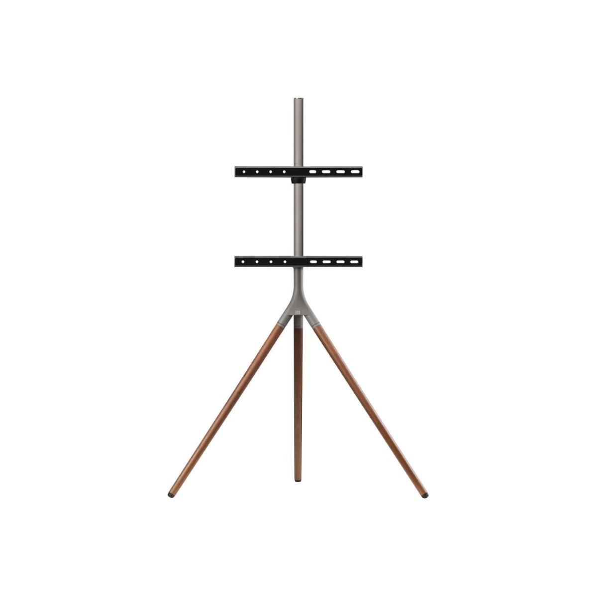 Features we love Free standing tripod is height adjustable. Suitable for all types of TV’s from 32-65 inch. Integrated Universal Soundbar holder. Anti-scratch paddingfeatures 360° swivel functionality. Need to know Dimensions Dimensions. H138.5 x W87.3 x D42 cm Packaging dimensions. H88 x W20.5 x D18.5cm. More info Weight. 6.8kg Colour. Gun Metal/Dark wood legs Material. Metal/Wood Assembly required. Yes..