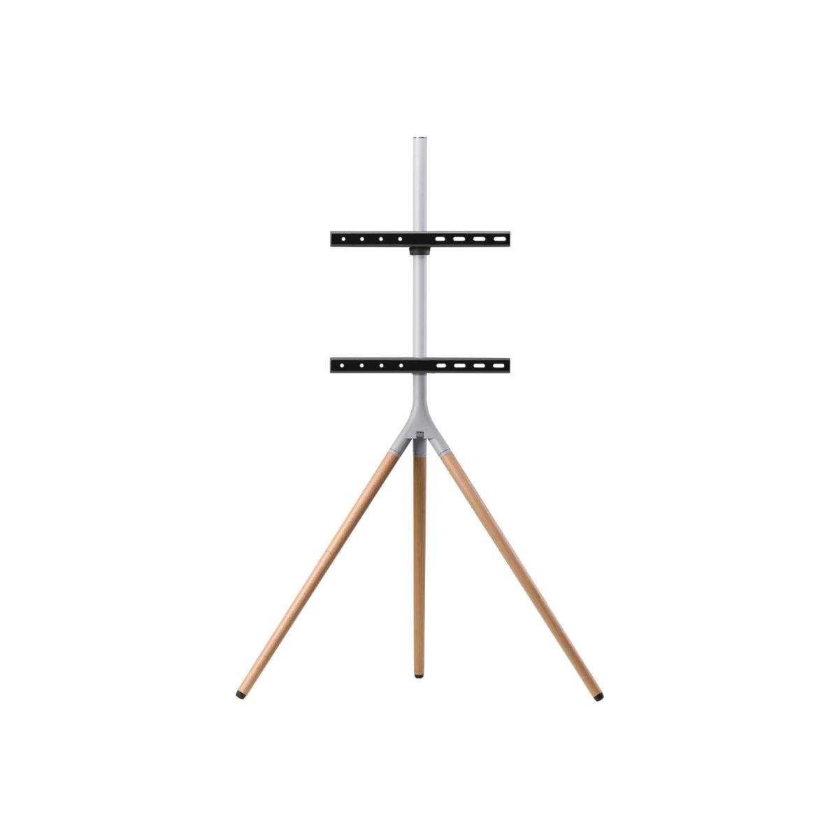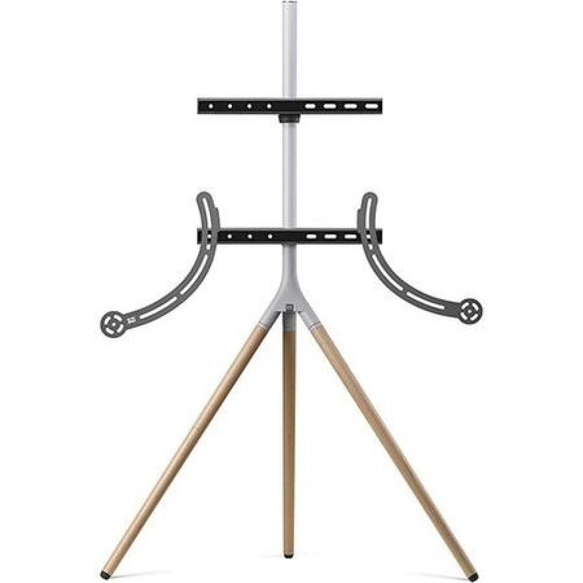Features we love Free standing wood tripod tv stand is height adjustable. Suitable for all TV sizes  from 32-65 inch. Integrated Universal Soundbar holder. Anti-scratch padding. Features 360° swivel functionality. Need to know Dimensions Dimensions. H138.5 x W87.3 x D42 cm Packaging dimensions. H88 x W20.5 x D18.5cm. More info Weight. 6.8kg Colour. Gun Metal/Light wood legs Material. Metal/Wood Assembly required. Yes..