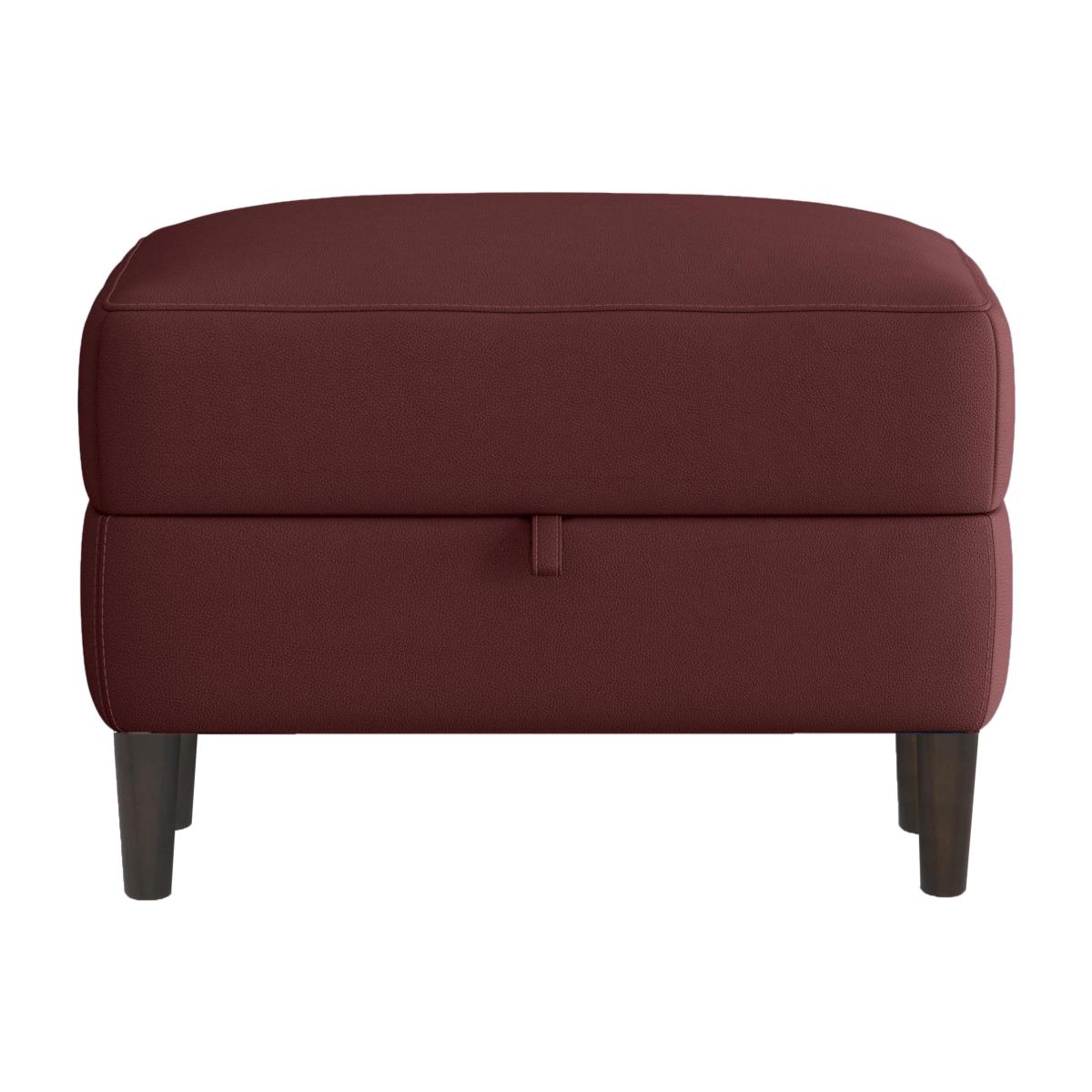 There's a lot to love about the World of Leather Uno range, not least of all the price. This compact and very comfortable collection – designed to suit smaller spaces with neat proportions and removable backs and feet – is amazing value, especially when you consider that it’s upholstered in 100% leather in a tempting selection of colours. It’s right on-trend too, channelling the popular mid-century aesthetic in the form of buttoned back and seat cushions, elegant splayed legs and gently angled arms. Uno is also available in a fabulous array of fashionable fabrics. The World of Leather Uno range is entirely handcrafted and exclusively available at Furniture Village. Put your feet up or take a seat on this stylish 100% leather storage footstool. Yours for a great-value price, it’s handcrafted and only available at Furniture Village. Why you'll love it This retro-style leather storage footstool is practical and stylish. On-trend compact design, amazing-value price. Mid-century details – angled legs and simple buttoning. 100% leather upholstery in a wide choice of colours. Hidden storage makes this footstool a great choice for any living room. Handmade exclusively for Furniture Village. This leather storage footstool is part of the World of Leather Uno range. What you need to know Medium comfort level. Top suspension: no-sag spring. Top cushioning: foam, fibre, inner coil. Removable feet. Leather has unique marks and characteristics with variation in colour and texture. Leather softens with use. Smoothing the tops of leather cushions prevents signs of visual comfort. Please read our upholstery care guide for more advice.