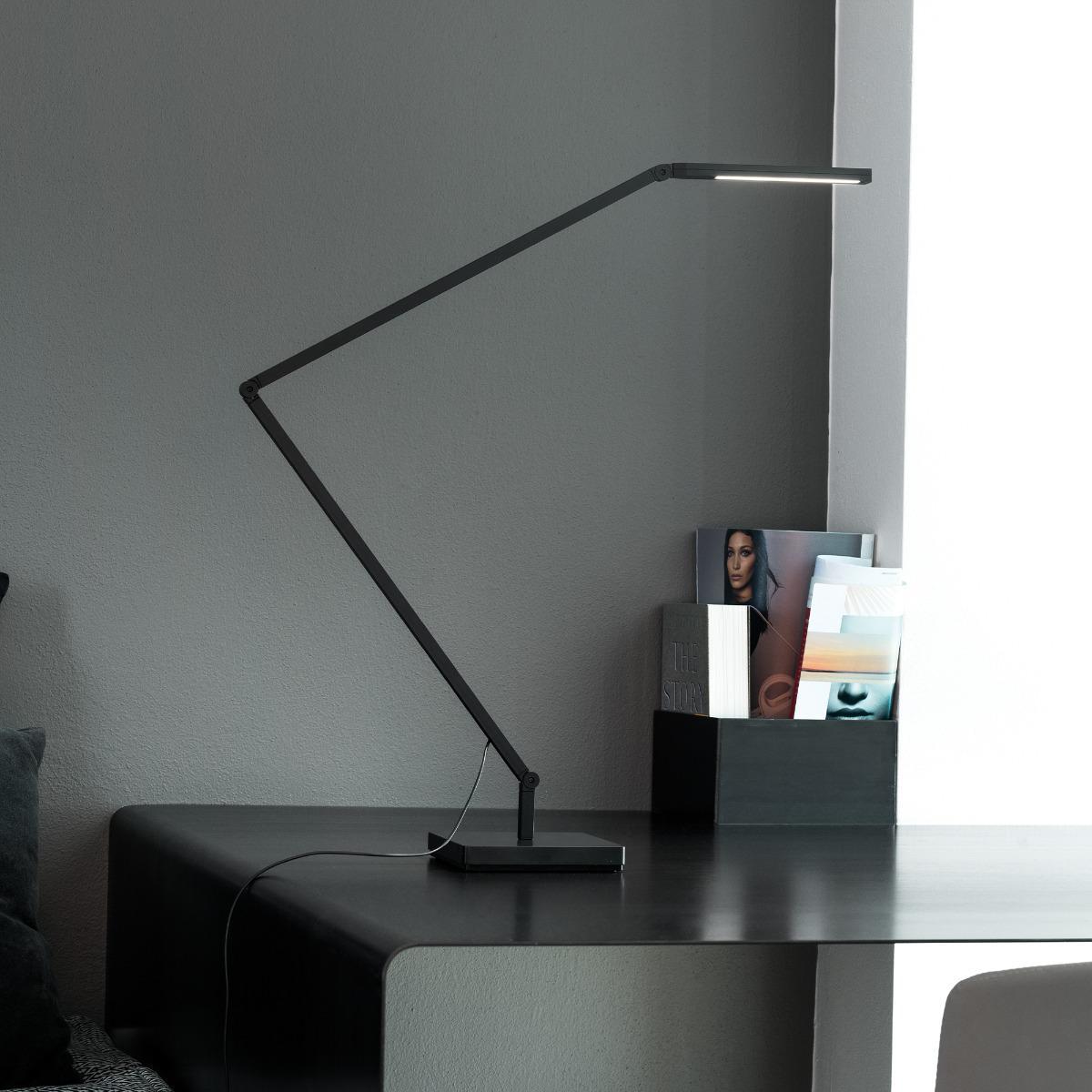 Inspired by the sculptural and kinetic aesthetics of articulated arms, Bernhard Osann presents the Untitled Table Lamp for Nemo. Each LED lamp is fashioned from extruded aluminium with intricate joining for flexible and dynamic light direction. Clean-lined without visible wiring, a convenient dimmer allows for setting the perfect ambience. Founded in Milan in 1993 by Franco Cassina, Italian powerhouse Nemo is at the forefront of cutting-edge lighting design. Each of its feature lights offers a matchless atmosphere and bold focal statement in its surroundings. Please note: This light features an integrated bulb with various colour temperatures. Kelvin (K) is a unit that measures the temperature and hue of a bulb; thus, the hotter the bulb, the higher the Kelvin and the brighter the quality of light produced. Inform your purchase by perusing our Lighting Buying Guide.