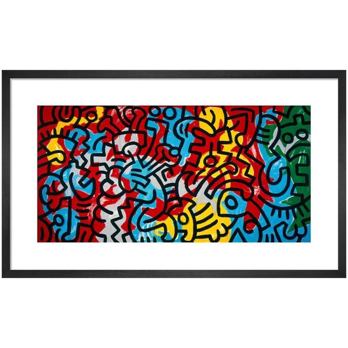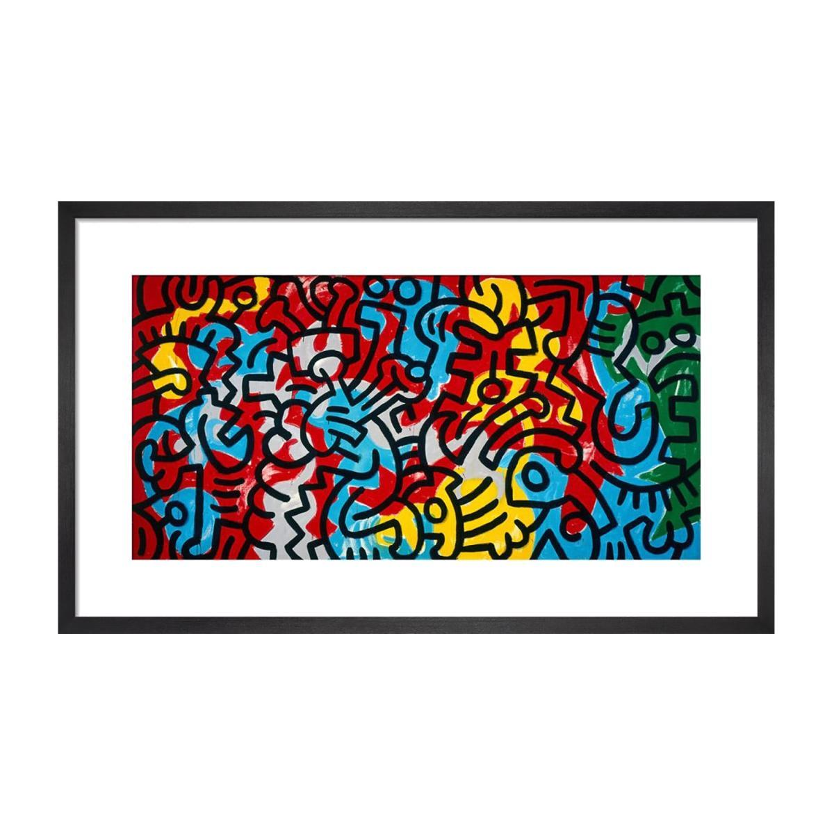 A prominent figure of 1980s New York graffiti culture, Keith Haring could be found in every subway station in the city. His humour, accessible imagery and vivid colours meant he was able to connect with a large audience. He proved the legitimacy of street art by bringing it to museums and galleries, blurring the boundary between high and low culture. His energetic drawings have been printed and framed by King and Mc. Gaw, retaining the vibrancy through high quality printing methods.
