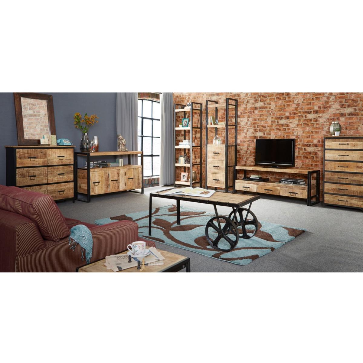 I’m a big fan of this upcycled cart table for its honest mix of reclaimed timber and black metal - it brings texture without fuss. The cast-iron wheels nod to its industrial past while the pale wood top keeps it feeling light. It works equally well in a warehouse-style loft, a pared-back Scandi living room or as a contrast in a soft-coloured contemporary space. Keep styling simple: a low-profile tray for remotes and a couple of art books, plus a small plant or sculptural vase. The wheels mean you can easily reposition it when you need extra floor space or want to switch things around.