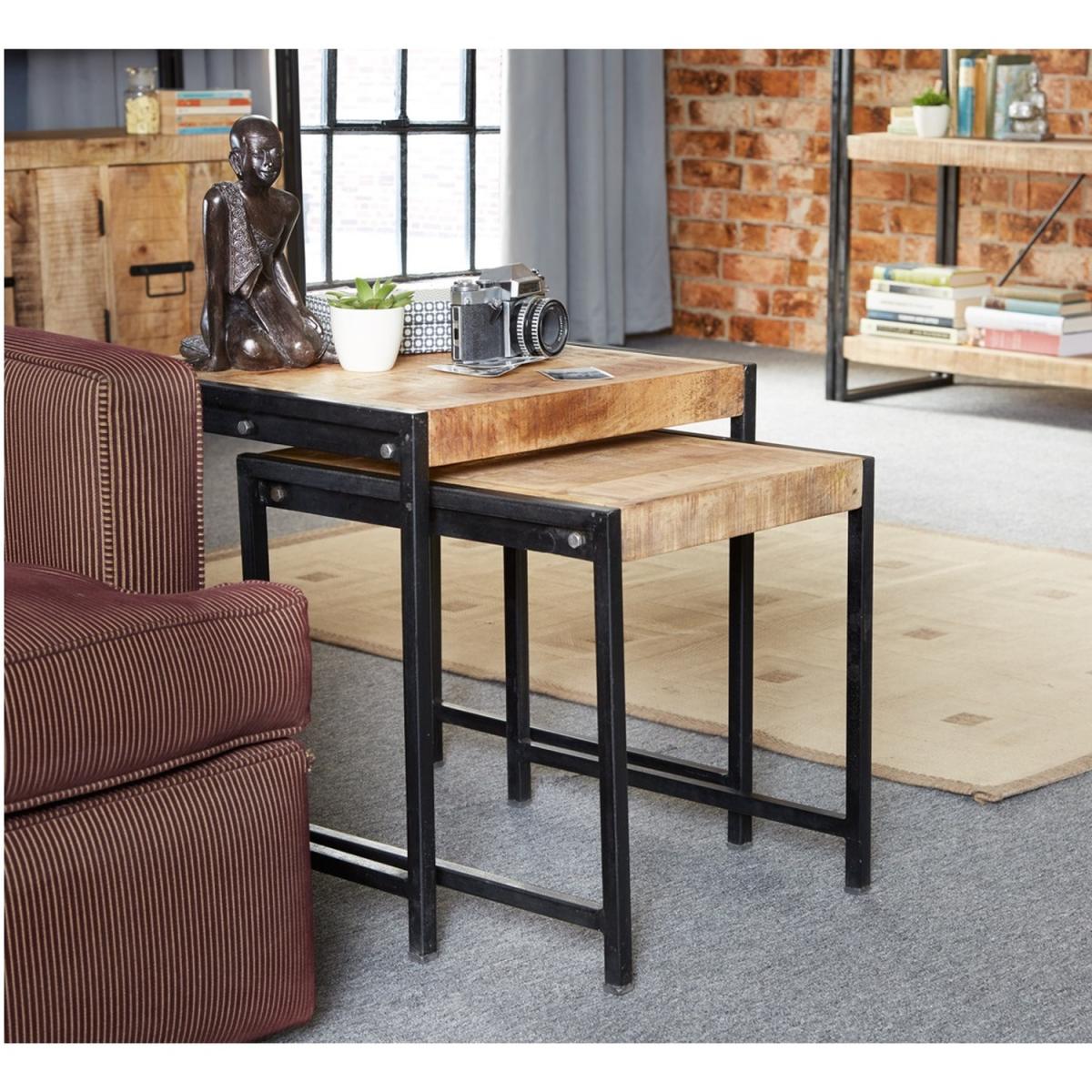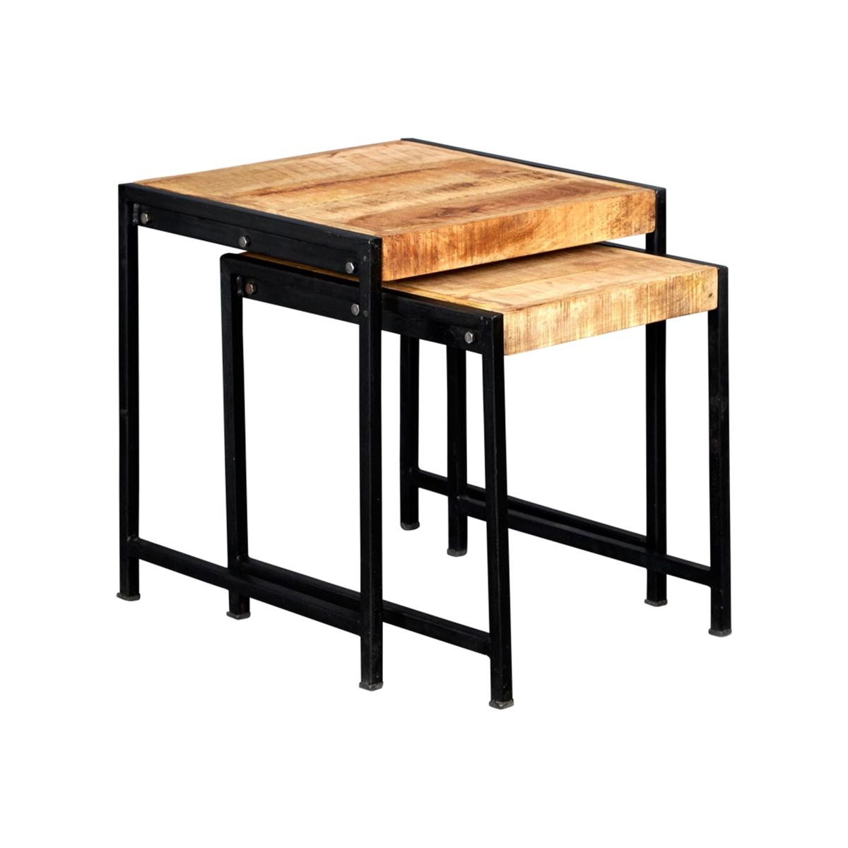 Upcycled Industrial Style Mintis Nest of 2 Tables - Light Wood