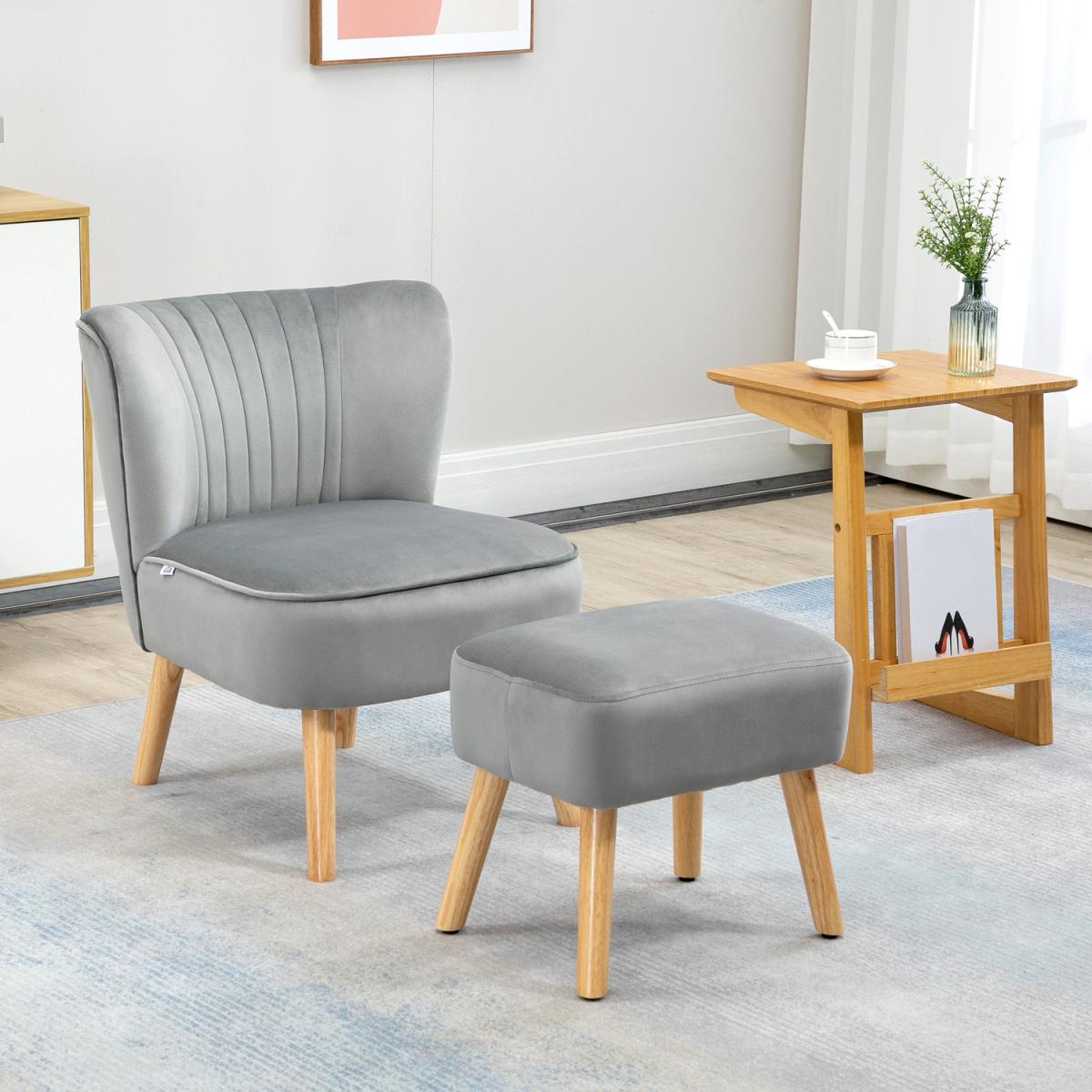 Soft sophistication this HOMCOM tub chair and footstool set. Both pieces wrapped in velvet-feel upholstery for a beautiful addition to any living space. Filled with padding for comfort, with wooden legs to support you as you rest. Those afternoon and evening time-outs Sorted.