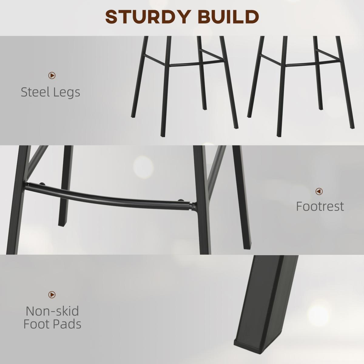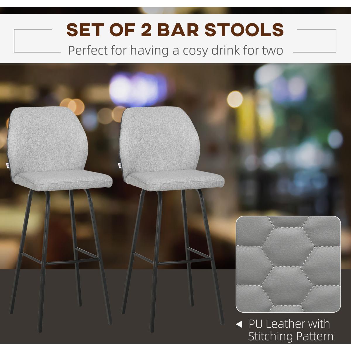 Highlight your home bar effortlessly do it with these HOMCOM breakfast bar stools. Powder coated steel frames mean a strong, supportive core, fitted with armless seats which give plenty of room to sit. Padded seats for comfort, with the high backs giving your body support. The linen-look upholstery is stylish, smooth and easy to spot clean an all-round winner. Complete with bottom bars to rest your feet.