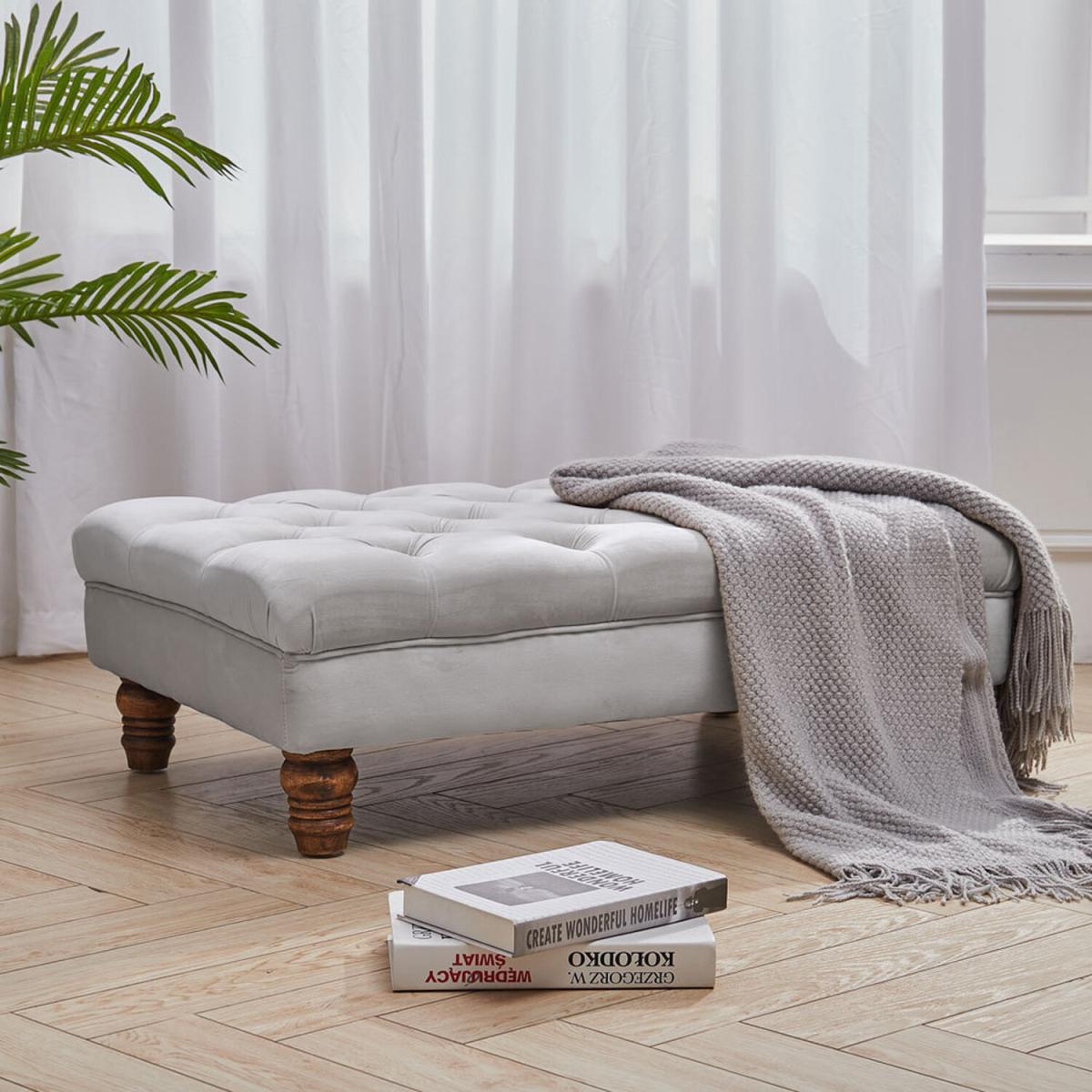 This multi functional stool is not only good to look at, also extremely durable thick strong along with the thick top padding enabling this item to be used as extra seating. Practical size for a great addition to any room or interior design. It can be used for sitting, as a cozy foot rest, or as a beautiful stylish decorative bench. The footrest works great a complementary addition to a sofa in a similar design or a trendy extra seat for living area as well as master suite. Self assembly required for the legs. This is perfect to use as an extra table or for addingspace, or simply use it to put your feet up and relax. Ideal for living room, bedroom, lounge, hallway, under window or lobby etc.