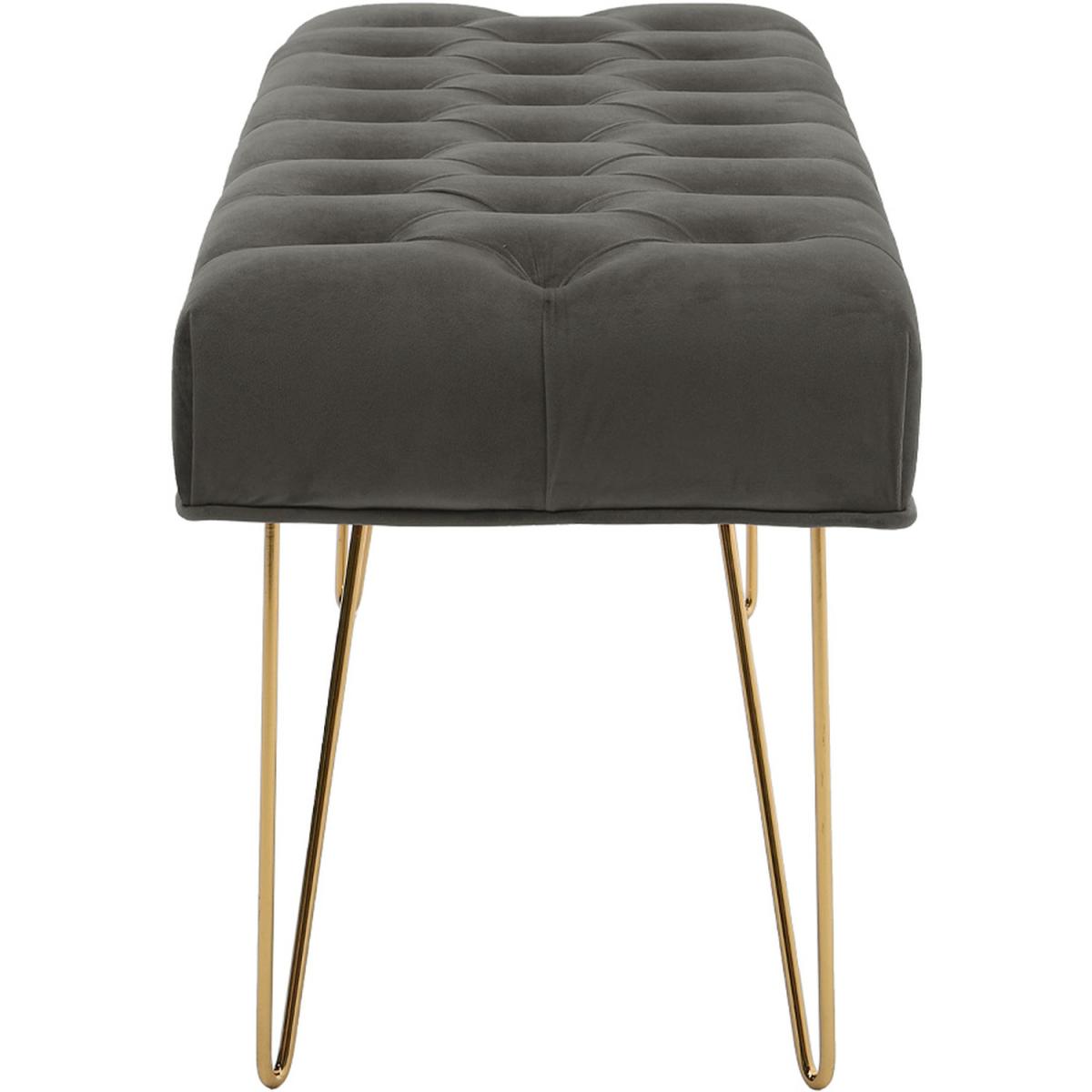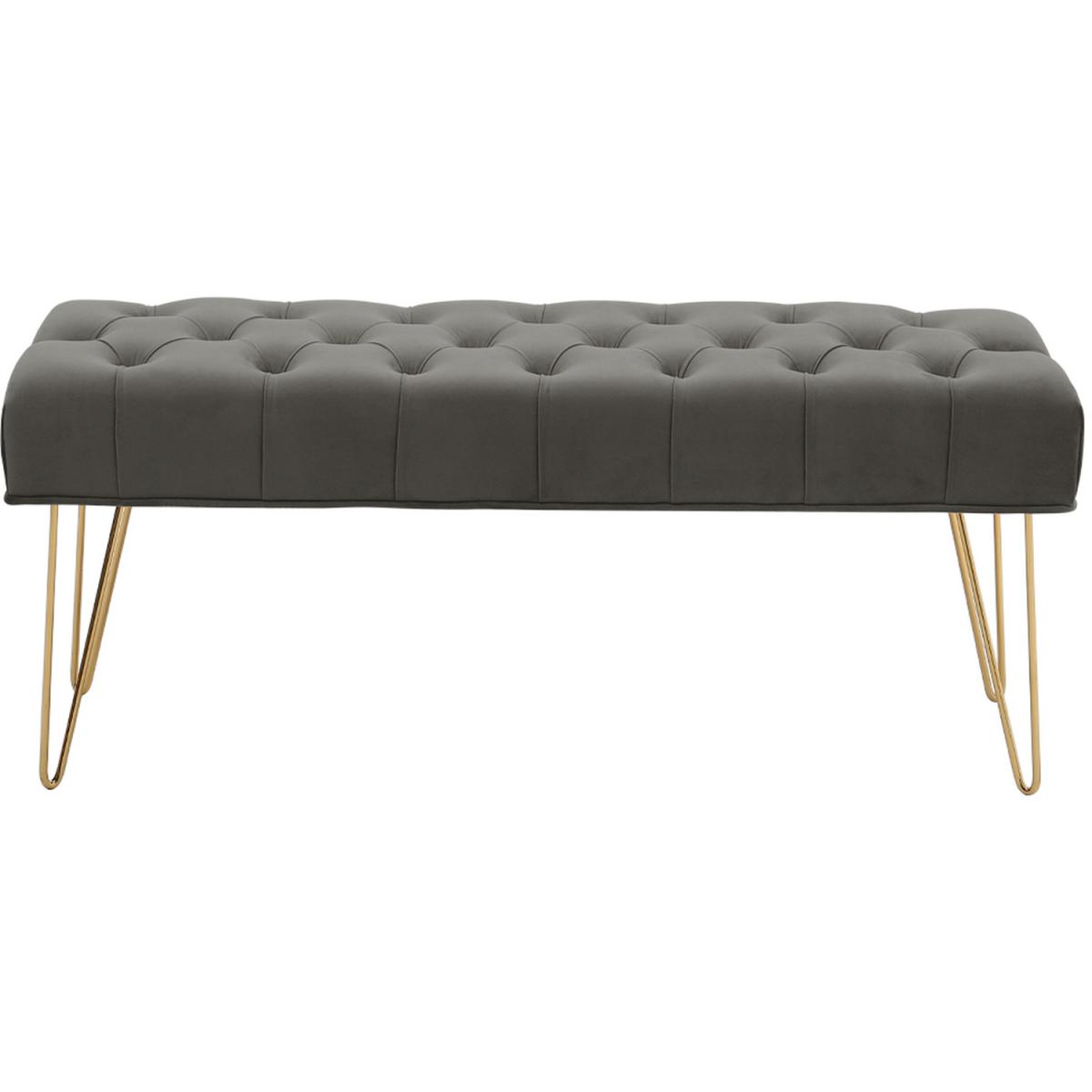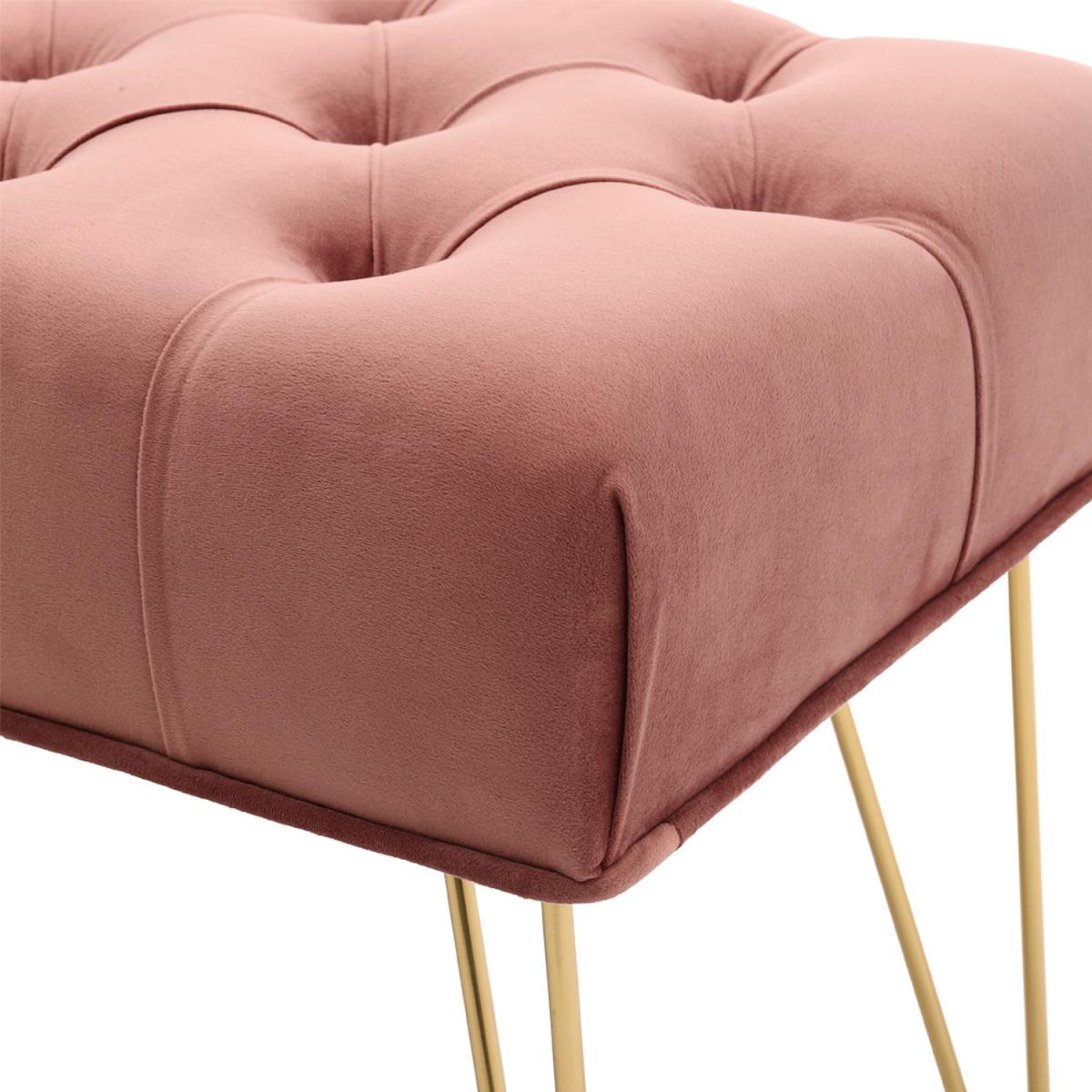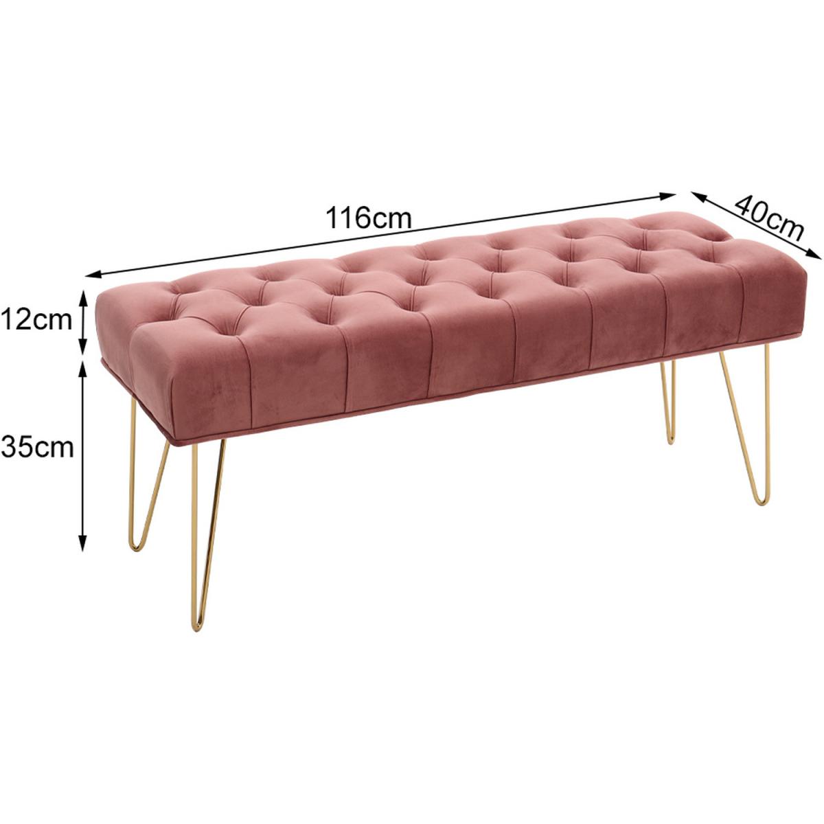 High quality velvet fabric, soft to touch but hard wearing, padded with high-density foam that is bouncy and elastic to sit on. Buttoned seat in style, extra beauty and appeal, gives this bench some luxurious charm. The bench itself has a wide and large sitting area, users can sit or lie on the bench comfortably. Velvet-look upholstery is smooth, breathable and can be spot cleaned easily. Galvanized legs ensure a solid and tough frame, keeping it balanced. Foot pads protect your floor. It Can be used in the bedroom, hallway, spare room, office and living room, creating an extra seat where needed.