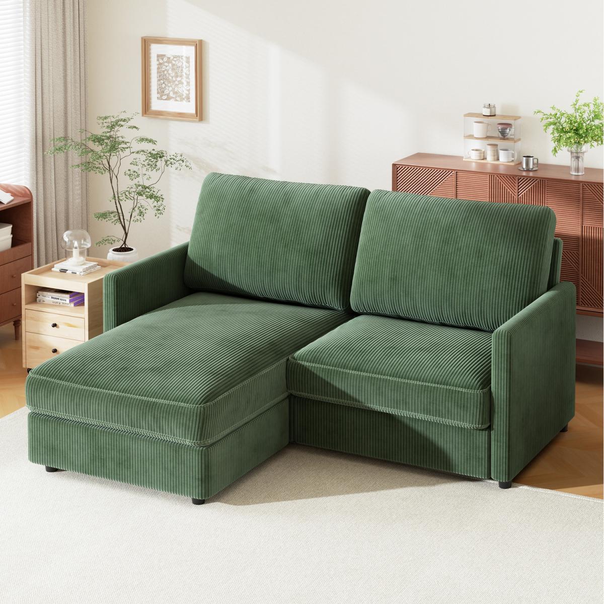 Upholstered Corduroy Corner Sofa for Living Room - Green